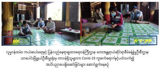 လူမှုဝန်ထမ်း၊ ကယ်ဆယ်ရေးနှင့်ပြန်လည်နေရာချထားရေးဝန်ကြီးဌာန၊ ဘေးအန္တရာယ်ဆိုင်ရာစီမံခန့်ခွဲမှုဦးစီးဌာန၊ သာပေါင်းမြို့နယ်ဦးစီးမှူးရုံးမှ တာဝန်ရှိသူများသည် ပုသိမ်ခရိုင်၊ သာပေါင်းမြို့နယ်၊ ကွက်ပြင်ကျေးရွာအုပ်စု၊ ဆိတ်ဖူးကုန်းကျေးရွာ၊ ပိန္နဲကုန်းကျေးရွာနှင့် ဝက်သိုက်ကုန်းကျေးရွာတို့၌ ကျေးရွာအုပ်စုအုပ်ချုပ်ရေးမှူး၊ရပ်မိရပ်ဖများ၊ ကျေးရွာရှိတာ၀န်ရှိသူများနှင့်အတူ (၂၄-၄-၂၀၂၀)ရက်နေ့၌ (၁၁:၀၀)နာရီအချိန်တွင် လက်တလောနိုင်ငံအသီးသီးတွင် ကူးစက်ပြန့်ပွားလျက်ရှိသော COVID-19 ကူးစက် ရောဂါနှင့်ပတ်သက်ပြီး ဆောင်ရန်/ရှောင်ရန်များကို ကျေးရွာ/ရပ်ကွက်နေပြည်သူတို့အား အသိပညာပေး ဟောပြောဆောင်ရွက်ခဲ့ ကြောင်း သတင်းရရှိပါသည်။