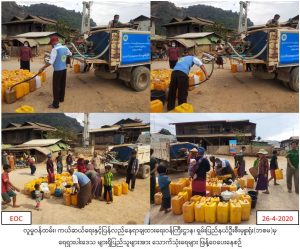 လူမှု၀န်ထမ်း၊ ကယ်ဆယ်ရေးနှင့်ပြန်လည်နေရာ ချထားရေး၀န်ကြီးဌာန၊ ဘေးအန္တရာယ်ဆိုင်ရာစီမံခန့်ခွဲမှုဦးစီးဌာန၊ ရှမ်းပြည်နယ်ဦးစီးမှူးရုံးမှ တာဝန်ရှိသူများသည် ရေရှားပါးမှုကြုံတွေ့နေရသော ဖယ်ခုံမြို့နယ်၊ ခေါင်းအိကျေးရွာအုပ်စု လတိန်ကျေးရွာရှိ အိမ်ထောင်စု (၄၂၅) စု လူဦးရေ (၂၀၈၈)ဦးအတွက် သောက်သုံးရေ(၂၁၀၀)ဂါလံကို (၂၆-၄-၂၀၂၀)ရက်နေ့၊ (၁၁:၀၀)နာရီအချိန်တွင် သွားရောက်ဖြန့်ဝေပေး ခဲ့ကြောင်း သတင်းရရှိပါသည်။