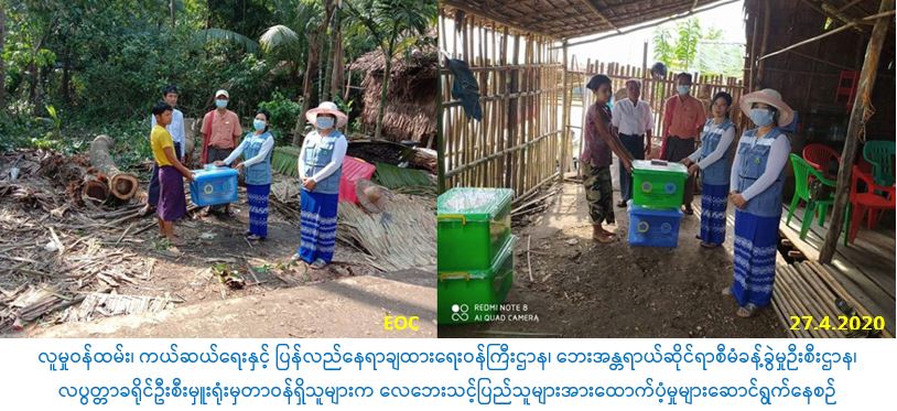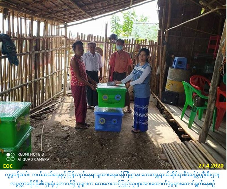 လူမှုဝန်ထမ်း၊ ကယ်ဆယ်ရေးနှင့် ပြန်လည်နေရာချထားရေးဝန်ကြီးဌာန၊ ဘေးအန္တရာယ်ဆိုင်ရာစီမံခန့်ခွဲမှုဦးစီးဌာန၊ လပွတ္တာခရိုင်ဦးစီးမှူးရုံးမှ တာဝန်ရှိသူများသည် လပွတ္တာမြို့နယ်၊ မင်းဘူးစု ကျေးရွာအုပ်စု၊ ရေနံချောင်းရွာသစ်ကျေးရွာတွင် (၂၅-၄-၂၀၂၀) ရက်နေ့(၁၅:၃၀)နာရီအချိန်၌ ဖြစ်ပွားခဲ့သော မိုးသက်လေပြင်းတိုက်ခိုက်မှုကြောင့် လေဘေးသင့်ခဲ့သော အိမ်ခြေ (၁)လုံး၊ လူဦးရေ(၃)ဦးတို့အတွက် အိမ်ထောင်စု(၁)စုစာ ကယ်ဆယ်ရေးပစ္စည်း (၁၆)မျိုး ပုံး(၁)ပုံး၊ အိမ်ဆောက်ပစ္စည်းဖိုးထောက်ပံ့ငွေ (၁၀၀,၀၀၀/-)ကျပ်၊ ဆန်ရိက္ခာ (၇)ရက်စာဖိုးထောက်ပံ့ငွေ (၆,၃၀၀)ကျပ်၊ စုစုပေါင်းထောက်ပံ့ငွေ (၁၀၆,၃၀၀/-)ကျပ်အားလည်းကောင်း၊ လပွတ္တာမြို့နယ်၊ သရက်ကုန်းလဲပျောက် ကျေးရွာအုပ်စု၊ ဖိုးငြိမ်းစုကျေးရွာတွင် (၂၅-၄-၂၀၂၀) ရက်နေ့ (၁၆:၁၀) အချိန်တွင် လေပြင်းတိုက်ခတ်မှုကြောင့် လေဘေးသင့်အိမ်ခြေ(၆)လုံး၊ လူဉီးရေ(၂၆)ဉီး၊ အိမ်ထောင်စု(၆)စုအတွက် ကယ်ဆယ်ရေးပစ္စည်း(၁၆)မျိုးပါ ပုံး(၆)ပုံး၊ အိမ်ဆောက်ပစ္စည်းဖိုး ထောက်ပံ့ငွေ(၆၀၀,၀၀၀/-)ကျပ်၊ ဆန်ရိက္ခာဖိုးထောက်ပံငွေ(၅၄,၆၀၀)ကျပ်၊ စုစုပေါင်း (၆၅၄,၆၀၀/-)ကျပ်အား (၂၇-၄-၂၀၂၀) ရက်နေ့၊ (၁၀:၀၀) နာရီအချိန်တွင် လွှတ်တော်ကိုယ်စားလှယ်၊ ကျေးရွာအုပ်ချုပ်ရေးမှူးတို့နှင့် အတူ ဘေးသင့်ပြည်သူများထံသို့ သွားရောက် ထောက်ပံ့ပေးအပ်ခဲ့ပါကြောင်း သတင်းရရှိပါသည်။
