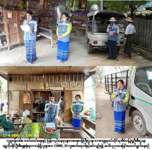 လူမှုဝန်ထမ်း၊ ကယ်ဆယ်ရေးနှင့် ပြန်လည်နေရာချထားရေးဝန်ကြီးဌာန၊ ဘေးအန္တရာယ်ဆိုင်ရာစီမံခန့်ခွဲမှုဉီးစီးဌာန၊ ရွှေဘိုခရိုင်ဦးစီးမှူးရုံးမှတာဝန်ရှိသူများသည် (၂၇-၄-၂၀၂၀) ရက်နေ့တွင် ခင်ဦးမြို့နယ်၊ ရှားလွင်၊ ကုလားလူး၊ ထနောင်းကိုင်း၊ လေး၊ ငါးတင်းကြီး၊ စိုင်ခေါင်း၊ အုန်းပင်ကုန်း၊ မောင်းချောင်းတော၊ ထနောင်းကိုင်းကြီး ရွာစဉ်ကျးရွာတို့၌ COVID-19 ကူးစက်ရောဂါနှင့်စပ်လျဉ်း၍ ဆောင်ရန်/ရှောင်ရန်အချက်များကို အသိပညာပေးနှိုးဆော်ခဲ့ပါကြောင်း သတင်းရရှိပါသည်။