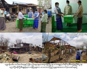 လူမှုဝန်ထမ်း၊ ကယ်ဆယ်ရေးနှင့် ပြန်လည်နေရာချထားရေးဝန်ကြီးဌာန၊ ဘေးအန္တရာယ်ဆိုင်ရာစီမံခန့်ခွဲမှုဦးစီး ဌာန၊ ညောင်ဦးခရိုင်ဦးစီးမှူးရုံးမှတာဝန်ရှိသူများသည် ခရိုင်အုပ်ချုပ်ရေးမှူး၊ ကျောက်ပန်းတောင်းမြို့နယ် အုပ်ချုပ်ရေးမှူး၊ လွှတ်တော်ကိုယ်စားလှယ်များ၊ သက်ဆိုင်ရာကျေးရွာအုပ်ချုပ်ရေးမှူးများနှင့်ပူးပေါင်း၍ ကျောက်ပန်းတောင်းမြို့နယ်၊ ညောင်ချိုင်း(မ/တ)ကျေးရွာ၊ ကင်မွန်းခြုံကျေးရွာ၊ မုန်ကုန်းကျေးရွာ၊ ရသေ့တောင်ကျေးရွာနှင့် ညောင်ပင်သာကျေးရွာများ၌ (၂၆-၄-၂၀၂၀) ရက်နေ့တွင် ဖြစ်ပွားခဲ့သော လေပြင်းတိုက်ခတ်မှုကြောင့် ဘေးသင့်ခဲ့သည့် နေအိမ်(၇၃)လုံးနှင့် ဘုန်းတော်ကြီးကျောင်း (၁)ကျောင်းတို့အတွက် အိမ်/ကျောင်းဆောက်ပစ္စည်းဖိုးစုစုပေါင်းထောက်ပံ့ငွေ (၅,၄၁၅,၀၀၀/-) ကျပ်၊ အိမ်ထောင်စု (၇၃)စုမှ လူဦးရေ (၃၁၉)ဦးတို့အတွက် ဆန်ရိက္ခာဖိုးထောက်ပံ့ငွေ (၆၆၉,၉၀ဝ/-) ကျပ်၊ ကယ်ဆယ်ရေးပစ္စည်း (၁၇)မျိုး (၄)အိမ်ထောင်စုစာနှင့် ကယ်ဆယ်ရေးပစ္စည်း (၁၈)မျိုး (၆)အိမ်ထောင်စုစာတို့ကို (၂၇-၄-၂၀၂၀) ရက်နေ့၊ (၁၇:၀၀) နာရီအချိန်တွင် ဘေးသင့်ပြည်သူများလက်ဝယ်အရောက် ထောက်ပံ့ပေးအပ်ခဲ့ပါကြောင်း သတင်းရရှိပါသည်။