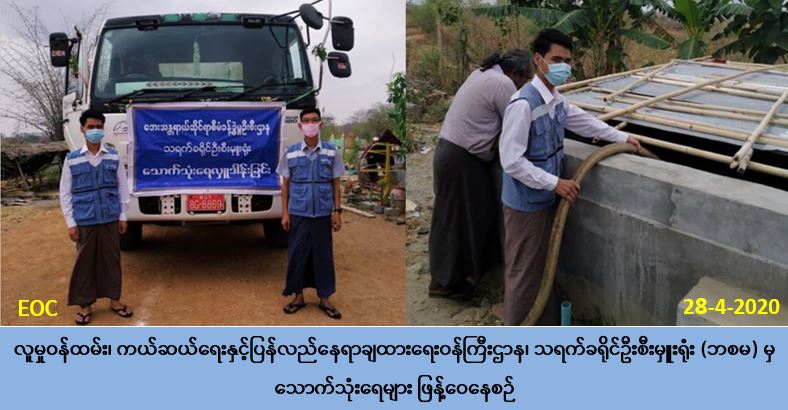 လူမှုဝန်ထမ်း၊ ကယ်ဆယ်ရေးနှင့် ပြန်လည်နေရာချထားရေးဝန်ကြီးဌာန၊ ဘေးအန္တရာယ် ဆိုင်ရာစီမံခန့်ခွဲမှုဦးစီးဌာန၊ သရက်ခရိုင်ဦးစီးမှူးရုံးမှ တာဝန်ရှိသူများသည် (၂၈-၄-၂၀၂၀) ရက်နေ့၊ နံနက် (၁၀:၀၀) နာရီအချိန်တွင် သောက်သုံးရေ အခက်အခက်အခဲဖြစ်ပေါ်နေသော သရက်မြို့နယ်၊ ပိတောက်ပင်ကျေးရွာအုပ်စု၊ ငလှိုင်ခြုံရေနံနယ်မြေ၊ တောရကျောင်းဘုရား ကုန်းရပ်ရှိ ဘုန်းတော်ကြီးကျောင်းသို့ သောက်သုံးရေဂါလံ (၃,၂၀၀) ကို ရေသယ်ယာဥ်ဖြင့် သွားရောက်လှူဒါန်းခဲ့ပါကြောင်းသတင်းရရှိပါသည်။