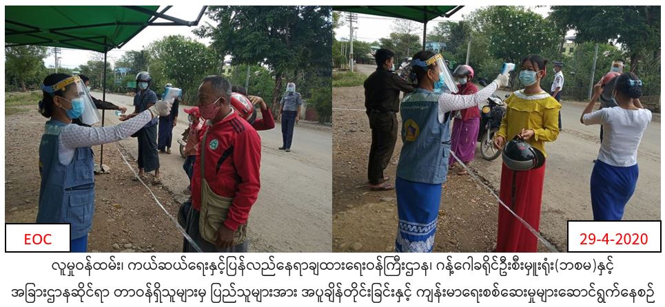 လူမှုဝန်ထမ်း၊ ကယ်ဆယ်ရေးနှင့်ပြန်လည်နေရာချထားရေးဝန်ကြီးဌာန၊ ဘေးအန္တရာယ်ဆိုင်ရာစီမံခန့်ခွဲမှုဦးစီးဌာန၊ ဂန့်ဂေါခရိုင်ဦးစီးမှူးရုံးမှ တာဝန်ရှိသူများသည် မြို့နယ်အထွေထွေအုပ်ချုပ်ရေးဦးစီးဌာန၊ ဌာနဆိုင်ရာများမှ တာဝန်ရှိသူများဖြင့်ပူးပေါင်း၍ (၂၉-၄-၂၀၂၀)ရက်နေ့ (ဝ၈:၃၀) နာရီမှ (၁၇:၃၀) နာရီအချိန်ထိ လတ်တလောနိုင်ငံအသီးသီးတွင် ကူးစက်ပြန့်ပွါးလျက်ရှိသည့် COVID-19 ရောဂါကြိုတင်ကာကွယ်ရေးအတွက်ဂန့်ဂေါခရိုင်အတွင်းယာဉ် ဝင်/ထွက်အတွက် စီးနင်းလိုက်ပါလာသော ခရီးသည်များအား ကိုယ်အပူချိန်တိုင်းထွာပေးခြင်းနှင့် ပြည်တွင်း/ပမှ ပြန်လာသူများအား စာရင်းပြုစုခြင်း တို့ကို ဆောင်ရွက်ခဲ့ကြောင်း သိရှိရပါသည်။