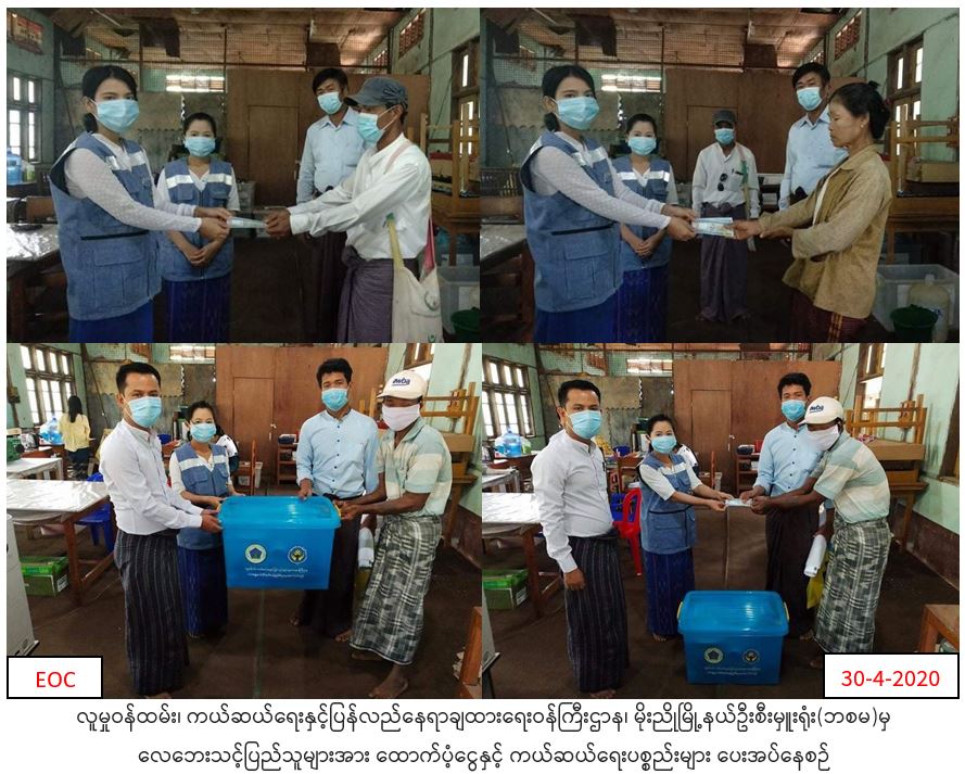 လူမှုဝန်ထမ်း၊ ကယ်ဆယ်ရေးနှင့် ပြန်လည်နေရာချထားရေးဝန်ကြီးဌာန၊ ဘေးအန္တရာယ်ဆိုင်ရာစီမံခန့်ခွဲမှုဦးစီးဌာန၊ မိုးညိုမြို့နယ်ဦးစီးမှူးရုံးမှ တာဝန်ရှိသူများသည် (၂၉-၄-၂၀၂၀)ရက်နေ့၊ (၁၆း၀၀)နာရီအချိန်၌ ပဲခူးတိုင်းဒေသကြီး၊ သာယာဝတီခရိုင်၊ မိုးညိုမြို့နယ်၊ ကျေးရွာအုပ်စု(၃)စု၊ ကျေးရွာ(၃)ရွာတို့တွင် ဖြစ်ပွားခဲ့သော လေဘေးမှ ပြိုလဲနေအိမ်(၁)လုံးနှင့် အမိုးလန်နေအိမ်(၂)လုံးတို့အတွက် အိမ်ဆောက်ပစ္စည်းဖိုးထောက်ပံ့ငွေ (၁၆၀၀၀၀)ကျပ်၊ အိမ်ထောင်စု(၁)စုရှိ လူဦးရေ(၅)ဦးတို့အတွက် ဆန်ရိက္ခာဖိုးထောက်ပံငွေ (၁၀၅၀၀)ကျပ် စုစုပေါင်းထောက်ပံ့ငွေ (၁၇၀၅၀၀)ကျပ် ကယ်ဆယ်ရေးပစ္စည်း(၁၆)မျိုး(ပလပ်စတစ်ပုံးအပါ)(၁)အိမ်ထောင်စာအား (၃၀-၄-၂၀၂၀)ရက်နေ့ (၁၁း၃ဝ)နာရီအချိန်တွင် မြို့နယ်အထွေထွေအုပ်ချုပ်ရေးဦးစီးဌာနရုံး၌ မိုးညိုမြို့နယ်အထွေထွေအုပ်ချုပ်ရေးဦးစီးဌာနမှတာဝန်ရှိသူများ၊ မြို့နယ်မီးသတ်တပ်ဖွဲ့ဝင်များ၊ ကျေးရွာအုပ်ချုပ်ရေးမှူးနှင့်အတူ ပြည်သူလက်ဝယ်အရောက် ထောက်ပံ့ပေးအပ်ခဲ့ပါကြောင်း သတင်းရရှိပါသည်။