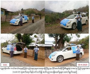 လူမှုဝန်ထမ်း၊ ကယ်ဆယ်ရေးနှင့်ပြန်လည်နေရာချထားရေးဝန်ကြီးဌာန၊ ဘေးအန္တရာယ်ဆိုင်ရာစီမံခန့်ခွဲမှုဦးစီးဌာန၊ မိုင်းဆတ်ခရိုင်ဦးစီးမှူးရုံးမှ တာဝန်ရှိသူများသည် (၃၀-၄-၂၀၂၀)ရက်နေ့တွင် မိုင်းဆတ်မြို့နယ်၊ ကာနကျေးရွာ၊ နောင်ဖာကျေးရွာ၊ မယ်နင်ကျေးရွာနှင့် လယ်ပြင်ကျေးရွာများသို့ လှည့်လည်ပြီး COVID-19 ကူးစက်ရောဂါနှင့် ပတ်သက်၍ ကြိုတင်ကာကွယ်နိုင်ရေး ပြည်သူသို့ ပန်ကြားချက်အသိပညာပေးမှုအား အသံချဲ့စက်ဖြင့် လှည့်လည်ဟောပြောခြင်းဆောင်ရွက်ခဲ့ကြော်ငး သတင်းရရှိပါသည်။
