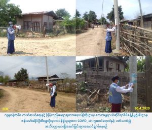 လူမှုဝန်ထမ်း၊ ကယ်ဆယ်ရေးနှင့် ပြန်လည်နေရာချထားရေးဝန်ကြီးဌာန၊ ဘေးအန္တရာယ်ဆိုင်ရာစီမံခန့်ခွဲမှုဦးစီးဌာန၊ ဗန်းမော်ခရိုင်ဦးစီးမှူးရုံးမှတာဝန်ရှိသူများသည် (၃၀-၄-၂၀၂၀) ရက်နေ့တွင် ဗန်းမော်ခရိုင်၊ မံစီမြို့နယ်အတွင်းရှိ ဂျိမ်းဖော့မြေရပ်ကွက်နှင့် အေးသာယာရပ်ကွက်တို့တွင် covid-19 ကူးစက်ရောဂါနှင့် ပတ်သက်၍ ပြည်သူများ ဆောင်ရန်/ရှောင်ရန် အချက်များကို အသိပညာပေးနိူးဆော်ခြင်းနှင့် အသိပညာပေးစာစောင်ကပ်ခြင်းလုပ်ငန်းများ ကို ဆောင်ရွက်ခဲ့ပါကြောင်း သတင်းရရှိပါသည်။
