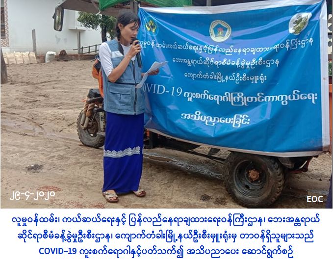 လူမှုဝန်ထမ်း၊ ကယ်ဆယ်ရေးနှင့် ပြန်လည်နေရာချထားရေးဝန်ကြီးဌာန၊ ဘေးအန္တရာယ်ဆိုင်ရာစီမံခန့်ခွဲမှုဦးစီးဌာန၊ ကျောက်တံခါးမြို့နယ်ဦးစီးမှူးရုံးမှ တာဝန်ရှိသူများသည် (၂၉-၄-၂၀၂၀) ရက်နေ့၊ (၁၃:၀၀) နာရီအချိန်တွင် ကျောက်တံခါးမြို့နယ်အတွင်းရှိ သမင်အင်းကုန်းကျေးရွာ၊ ဇီးကုန်းကျေးရွာ၊ ခိုလိုကျေးရွာ၊ ဒိုးတန်းကျေးရွာနှင့် လက်ခံကျေးရွာတို့တွင် COVID-19 ကူးစက်ရောဂါနှင့်ပတ်သက်ပြီး ဆောင်ရန်/ ရှောင်ရန်များကို ကျေးရွာနေပြည်သူတို့အား အသိပညာပေးခြင်းများ ဆောင်ရွက်ခဲ့ကြောင်း သတင်းရရှိပါသည်။
