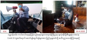 လူမှုဝန်ထမ်း၊ ကယ်ဆယ်ရေးနှင့် ပြန်လည်နေရာချထားရေးဝန်ကြီးဌာန၊ ဘေးအန္တရာယ်ဆိုင်ရာစီမံခန့်ခွဲမှုဦးစီးဌာန၊ ဖျာပုံခရိုင်ဦးစီးမှူးရုံးမှတာဝန်ရှိသူများသည် (၃၀-၄-၂၀၂၀) ရက်နေ့တွင် ဒေးဒရဲမြို့နယ်၊ နောက်ပြန်တိုးကျေးရွာအုပ်စုမှ နောက်ပြန်တိုးကျေးရွာ၊ တိုက်စုကျေးရွာ၊ စက်ပိုင်းကျေးရွာ၊ ကျုံဓမင်းကျေးရွာ၊ ရွာသာကြီးကျေးရွာမှတာဝန်ရှိသူတို့နှင့်အတူ COVID-19 ရောဂါကူးစက်ပျံ့နှံ့မှုများ မဖြစ်ပွားစေရေးအတွက် လိုက်နာဆောင်ရွက်ရန်များကို ကျေးရွာရှိပြည်သူများအား အသိပညာပေးခြင်းလုပ်ငန်းများဆောင်ရွက်ခဲ့ကြောင်း သတင်းရရှိပါသည်။