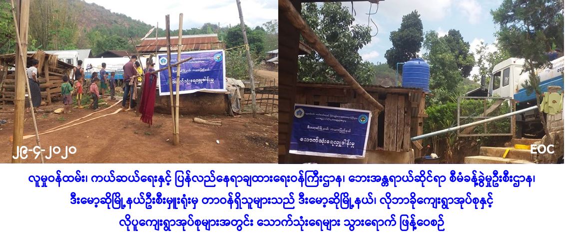 လူမှုဝန်ထမ်း၊ ကယ်ဆယ်ရေးနှင့် ပြန်လည်နေရာချထားရေးဝန်ကြီးဌာန၊ ဘေးအန္တရာယ်ဆိုင်ရာ စီမံခန့်ခွဲမှုဦးစီးဌာန၊ ဒီးမော့ဆိုမြို့နယ်ဦးစီးမှူးရုံးမှ တာဝန်ရှိသူများသည် (၂၉-၄-၂၀၂၀) ရက်နေ့တွင် ဒီးမော့ဆိုမြို့နယ်၊ လိုဘာခိုကျေးရွာအုပ်စု၊ လိုဘာခိုကျေးရွာနှင့် လိုပူကျေးရွာအုပ်စု၊ ဒေါဆီးအီကျေးရွာများသို့ သောက်သုံးရေဂါလံ(၃၂၀၀)အား သွားရောက်ဖြန့်ဝေပေးခဲ့ကြောင်း သတင်းရရှိပါသည်။