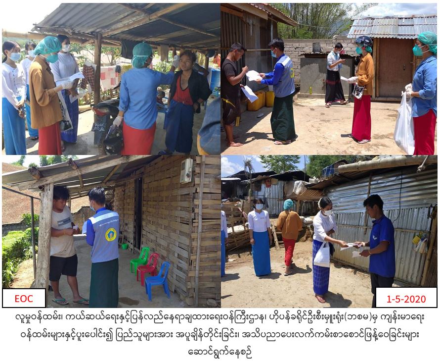 လူမှုဝန်ထမ်း၊ ကယ်ဆယ်ရေးနှင့်ပြန်လည်နေရာချထားရေးဝန်ကြီးဌာန၊ ဘေးအန္တရာယ်ဆိုင်ရာစီမံခန့်ခွဲမှုဦးစီးဌာန၊ ဟိုပန်ခရိုင်ဦးစီးမှူးရုံးမှ တာဝန်ရှိသူများသည် (၁- ၅ -၂၀၂၀) ရက်နေ့တွင် ပြည်သူ့ကျန်းမာရေးနှင့်ကုသရေးဦးစီးဌာန၊ ခရိုင်လူမှုဝန်ထမ်းဦးစီးဌာနတို့နှင့် ချိတ်ဆက်၍ ဟိုပန်မြို့ ၊ မိန်းပန်းလွယ်ရပ်ကွက်ရှိ Home Quarantine ဝင်နေသည့် ၂၈ရက်ပြည့်သော စောင့်ကြည့်လူနာများနှင့် မိသားစုဝင်များအား နှစ်သိမ့်ပညာပေးခြင်း၊ အပူချိန်တိုင်းခြင်း၊ လက်ကမ်းစာစောင်များ ဖြန့်ဝေခြင်းနှင့် covid-19နှင့် ပတ်သက်သည့် ဆောင်ရန်၊ရှောင်ရန်အချက်များအား အသိပညာပေးခြင်းလုပ်ငန်းများ ဆောင်ရွက်ခဲ့ကြောင်း သတင်းရရှိပါသည်။