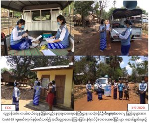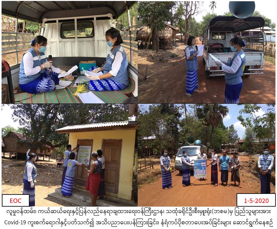 လူမှုဝန်ထမ်း၊ ကယ်ဆယ်ရေးနှင့်ပြန်လည်နေရာချထားရေးဝန်ကြီး ဌာန၊ ဘေးအန္တရာယ်ဆိုင်ရာစီမံခန့်ခွဲမှုဉီးစီးဌာန၊ သထုံခရိုင်ဦးစီးမှူးရုံးမှ တာဝန်ရှိသူများသည်(၁-၅-၂၀၂၀) ရက်နေ့ (၁၀:၃၀)နာရီအချိန်မှ(၁၆:၃၀) နာရီအချိန်ထိမွန်ပြည်နယ် သထုံခရိုင်၊ သထုံမြို့နယ် ကော့လှိုင်းကျေးရွာနှင့် ဝင်းဖုန်းကျေးရွာတို့တွင် COVID -19 ကူးစက်ရောဂါနှင့် ပတ်သက်၍ အသိပညာပေးခြင်းနှင့် ဗီနိုင်းပိုစတာကပ်ခြင်းတို့အားဆောင်ရွက်ခဲ့ကြောင်း သတင်းရရှိပါသည်။