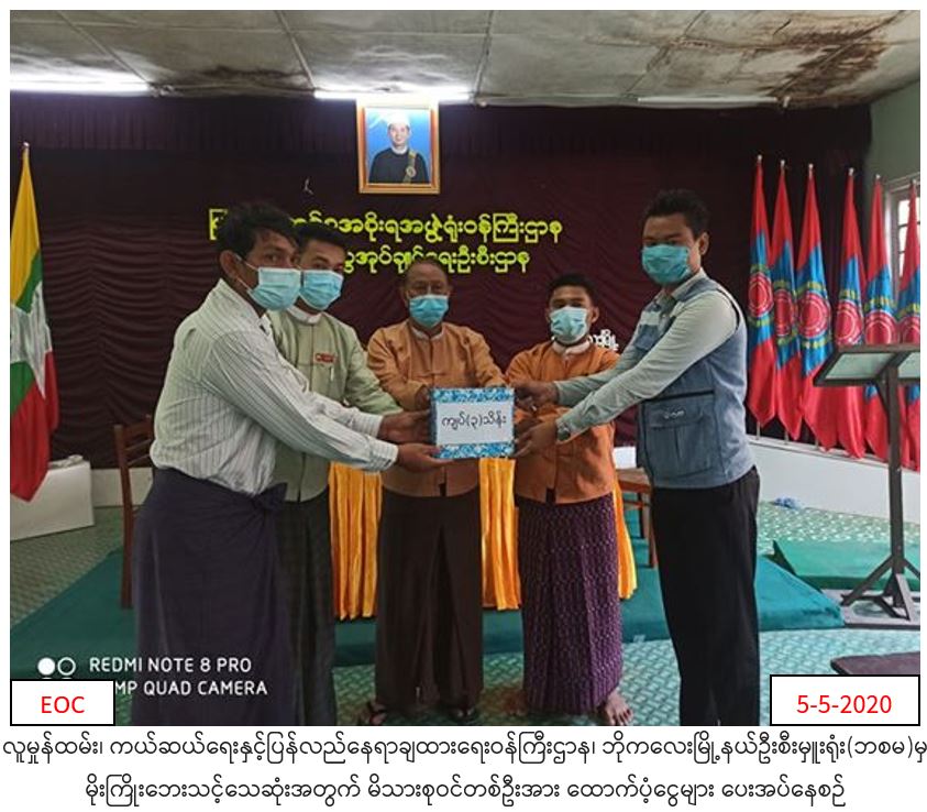 လူမှုဝန်ထမ်း၊ ကယ်ဆယ်ရေးနှင့်ပြန်လည်နေရာချထားရေးဝန်ကြီးဌာန၊ ဘေးအန္တရာယ်ဆိုင်ရာစီမံခန့်ခွဲမှုဦးစီးဌာန၊ ဘိုကလေးမြို့နယ်ဦးစီးမှူးရုံးမှတာဝန်ရှိသူများသည် (၁.၅.၂၀၂၀)ရက်နေ့တွင် ဘိုကလေးမြို့နယ်၊ ခနောင်ကျေးရွာအုပ်စု၊ ခနောင်ကျေးရွာတွင် ဖြစ်ပွားခဲ့သောမိုးကြိုးဘေးကြောင့် သေဆုံးသူတစ်ဦးအတွက် ထောက်ပံ့ ငွေ(၃၀၀၀၀၀)ကျပ်တိတိအား (၅.၅.၂၀၂၀)ရက်နေ့ (၀၉:၀၀)နာရီအချိန်တွင် သေဆုံးသူ၏မိသားစုဝင်များလက်ဝယ်သို့ အထွေထွေအုပ်ချုပ်ရေးဦးစီးဌာနမှတာဝန်ရှိသူများ လွှတ်တော်ကိုယ်စားလှယ်များ ရှေ့မှောက်တွင် ထောက်ပံ့ပေးအပ်ခဲ့ကြောင်း သတင်းရရှိပါသည်။