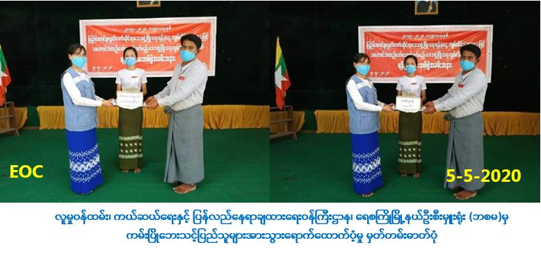 လူမှုဝန်ထမ်း၊ ကယ်ဆယ်ရေးနှင့် ပြန်လည်နေရာချထားရေးဝန်ကြီးဌာန၊ ဘေးအန္တရာယ်ဆိုင်ရာစီမံ ခန့်ခွဲမှုဦးစီးဌာန၊ ရေစကြိုမြို့နယ်ဦးစီးမှူးရုံးမှ တာဝန်ရှိသူများသည် (၅-၅-၂၀၂၀) ရက်နေ့၊ (၀၆:၀၀) နာရီအချိန်၌ ရေစကြိုမြို့နယ်၊ နွယ်နီကျေးရွာအုပ်စု၊ နွယ်နီကျွန်းကျေးရွာတွင် ချင်းတွင်းမြစ်ရေ တိုက်စားကမ်းပါးပြိုကျမှုကြောင့် ကြိုတင်ဖျက်သိမ်းပြောင်းရွှေ့ခြင်းများ ဆောင်ရွက်ခဲ့ကြရာ ကြိုတင်ဖျက်သိမ်းပြောင်းရွှေ့လူနေအိမ်(၁၁)လုံး၊ အိမ်ထောင်စု(၁၁)စု၊ လူဦးရေ (၅၂)ဦးတို့အတွက် အိမ်ဆောက်ပစ္စည်းဖိုးထောက်ပံ့ငွေ(၁,၁၀၀,၀၀ဝိ/-)ကျပ်၊ ဆန်ရိက္ခာဖိုး ထောက်ပံ့ငွေ(၁၀၉,၂၀ဝိ/-) ကျပ်၊စုစုပေါင်းကျပ်(၁,၂၀၉,၂၀ဝိ/-)ကျပ်အား(၅-၅-၂၀၂၀)ရက်နေ့၊ (၁၅:၃၀) နာရီအချိန်တွင် ရေစကြို မြို့နယ်အထွေထွေအုပ်ချုပ်ရေးဦးစီးဌာနရုံး၌ မြို့နယ်အထွေထွေ အုပ်ချုပ်ရေးရုံးမှ တာဝန်ရှိသူနှင့် အတူ ကျေးရွာအုပ်ချုပ်ရေးမှူးလက်ဝယ်အရောက် ထောက်ပံ့ပေးအပ်ခဲ့ကြောင်း သတင်းရရှိပါသည်။