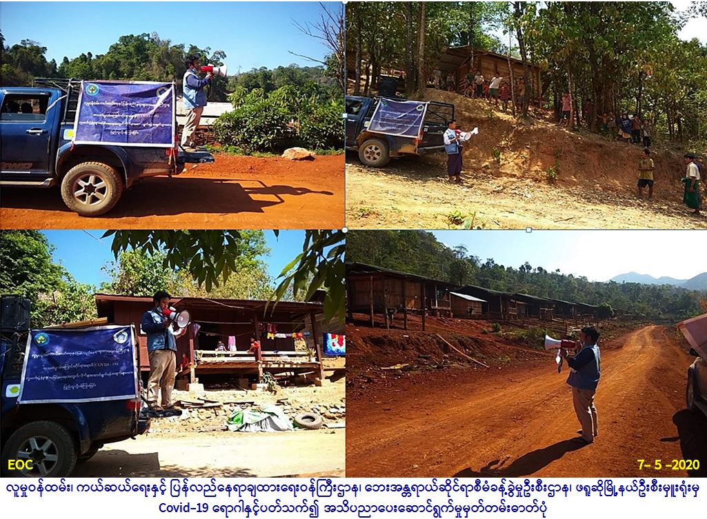 လူမှုဝန်ထမ်း၊ ကယ်ဆယ်ရေးနှင့် ပြန်လည်နေရာချထားရေး ဝန်ကြီးဌာန၊ ဘေးအန္တရာယ်ဆိုင်ရာစီမံခန့်ခွဲမှုဉီးစီးဌာန၊ ဖရူဆိုမြို့နယ်ဦးစီးမှူးရုံးမှ တာဝန်ရှိသူများသည် (၇.၅.၂၀၂၀) ရက်နေ့တွင် ဖရူဆိုမြို့နယ်၊ ကေ ကောကျေးရွာအုပ်စု၊ ဖာဝယ်ကျေးရွာ၊ စောပလိခိုကျေးရွာ၊ ထီးဝေါခေါကျေးရွာနှင့် ဖော်လော်ကျေးရွာများရှိ ပြည်သူများအား COVID-19 ကူးစက်ရောဂါ ပြန့်ပွားမှု မဖြစ်ပွားစေရန်အတွက် သိရှိလိုက်နာရန်အချက်များနှင့် သဘာဝဘေးအန္တရာယ်နှင့်စပ်လျဉ်းသည့် ဆောင်ရန်၊ ရှောင်ရန်များကို အသိပညာဖြန့်ဝေပေးခဲ့ပါကြောင်း သတင်းရရှိပါသည်။