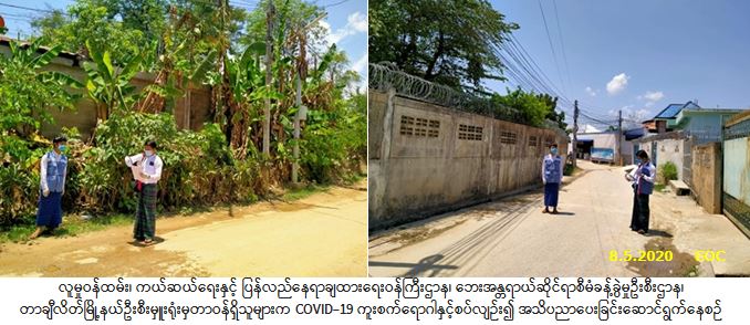 လူမှုဝန်ထမ်း၊ ကယ်ဆယ်ရေးနှင့် ပြန်လည်နေရာချထားရေးဝန်ကြီးဌာန၊ ဘေးအန္တရာယ်ဆိုင်ရာစီမံခန့်ခွဲမှုဦးစီး ဌာန၊ တာချီလိတ်မြို့နယ်ဦးစီးမှူးရုံးမှတာဝန်ရှိသူများသည် (၈-၅-၂၀၂၀) ရက်နေ့တွင် တာချီလိတ်မြို့၊ ဟောင်လိတ်ကျေးရွာအုပ်စု၊ ပန်ကူကျေးရွာ၊ သြကာပကျေးရွာ၌ COVID-19 ကူးစက်ရောဂါနှင့်စပ်လျဉ်း၍ ဆောင်ရန်/ရှောင်ရန်အချက်များကို ရှမ်းဘာသာ၊ ဗမာဘာသာဖြင့် အသိပညာပေးနှိုးဆော်ခဲ့ပါကြောင်း သတင်းရရှိပါသည်။