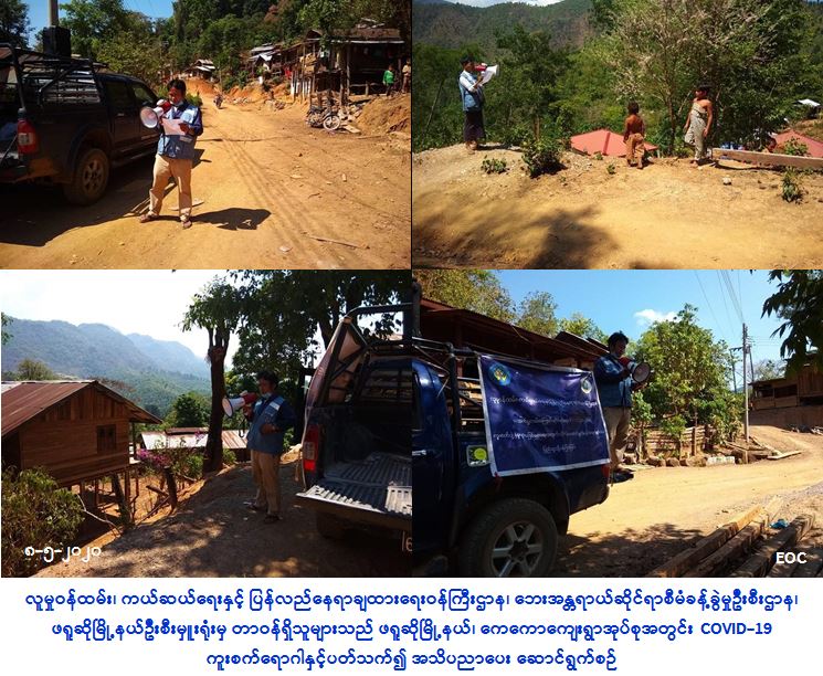 လူမှုဝန်ထမ်း၊ ကယ်ဆယ်ရေးနှင့် ပြန်လည်နေရာချထားရေးဝန်ကြီးဌာန၊ ဘေးအန္တရာယ်ဆိုင်ရာစီမံခန့်ခွဲမှုဦးစီးဌာန၊ ဖရူဆိုမြို့နယ်ဦးစီးမှူးရုံးမှ တာဝန်ရှိသူများသည် (၈-၅-၂၀၂၀) ရက်နေ့တွင် ဖရူဆိုမြို့နယ်၊ ကေကောကျေးရွာအုပ်စု၊ ကေကောကျေးရွာ၊ ခေါလေကျေးရွာ၊ ယိုလိခိုကျေးရွာနှင့် ဘွယ်ဒိုးသာကျေးရွာများရှိ ပြည်သူများအား COVID-19 ကူးစက်ရောဂါ ပျံ့နှံ့မှုမဖြစ်ပွားစေရန် သိရှိလိုက်နာရန်အချက်များနှင့် သဘာဝဘေးအန္တရာယ်နှင့်စပ်လျဉ်းသည့် ဆောင်ရန်၊ ရှောင်ရန်များကို အသိပညာပေး ဆောင်ရွက်ခဲ့ကြောင်း သတင်းရရှိပါသည်။