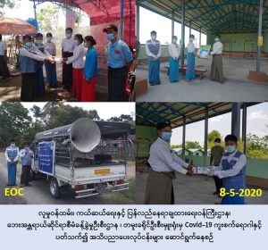 လူမှုဝန်ထမ်း၊ ကယ်ဆယ်ရေးနှင့် ပြန်လည်နေရာချထားရေးဝန်ကြီးဌာန၊ ဘေးအန္တရာယ်ဆိုင်ရာ စီမံခန့်ခွဲမှုဦးစီးဌာန၊ တမူးခရိုင်ဦးစီးမှူးရုံးမှ ဝန်ထမ်းများသည် (၈-၅-၂၀၂၀)ရက်နေ့ ၊ (၀၉:၀၀ ) နာရီအချိန်မှ (၁၄:၀၀)နာရီအချိန်ထိ အထွေထွေအုပ်ချုပ်ရေးဦးစီးဌာန၊ ကျန်းမာရေးဦးစီးဌာန၊ လူမှုဝန်ထမ်းဦးစီးဌာန၊ လူငယ်ရေးရာကော်မတီနှင့်ပူးပေါင်း၍ တမူးခရိုင်အတွင်းရှိ စောင့်ကြည့် လူနာများ ထားရှိရန်ဖွင့်လှစ်ထားသော Community Based Facility Quarantine နေရာ များအား Covid-19 ရောဂါနှင့်ပတ်သက်၍ လိုက်နာဆောင်ရွက်ရမည့် အသိပညာပေးပိုစတာများ နှင့် လက်ကမ်းစာစောင်များ ဖြန့်ဝေခြင်း၊ ခါမ်းပါတ်မြို့နှင့် ကနန်ကျေးရွာ၊ ကျွန်းတောရေရှင် ကျေးရွာတို့တွင် Covid-19 ရောဂါနှင့်ပတ်သက်၍ အသိပညာပေးဆောင်ရွက်ခဲ့ကြောင်း သတင်း ရရှိ ပါသည်။