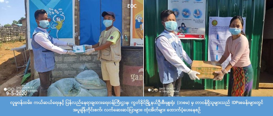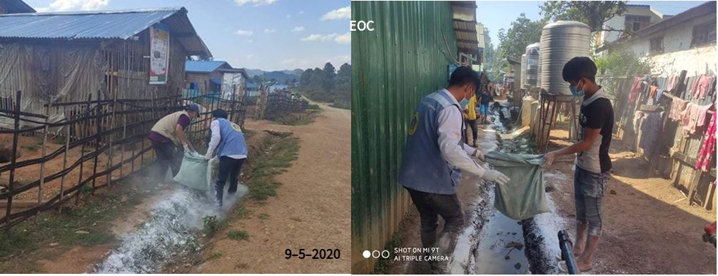 လူမှုဝန်ထမ်း၊ ကယ်ဆယ်ရေးနှင့် ပြန်လည်နေရာချထားရေးဝန်ကြီးဌာန၊ ဘေးအန္တရာယ်ဆိုင်ရာစီမံခန့်ခွဲမှုဦးစီးဌာန၊ ကွတ်ခိုင်မြို့နယ်ဦးစီးမှူးရုံးမှ တာဝန်ရှိသူများသည် (၉-၅- ၂၀၂၀) ရက်နေ့တွင် ကွတ်ခိုင်မြို့နယ်အတွင်း (၃) ရပ်ကွက် ကာသိုလိပ်ဘုရားကျောင်းရှိ အိမ်ထောင်စု (၃၀)၊လူဦးရေ(၁၃၈) ဦး၊ ကာလိုင် (၁) ရှိ အိမ်ထောင်စု(၈၄)စု၊ လူဦးရေ(၄၉၆) ဦး၊ ကာလိုင်(၂)ရှိ အိမ်ထောင်စု (၁၇၅) စု၊ လူဦးရေ(၁,၁၀၅) ဦး၊ (၅)ရပ်ကွက်နှစ်ခြင်းအသင်းတော်ရုံး ရှိ အိမ်ထောင်စု(၅၆) စု၊ လူဦးရေ(၂၆၅)ဦး၊ (၆)ရပ်ကွက် မူကြိုကျောင်းရှိ အိမ်ထောင်စု(၃၈)စု၊ လူဦးရေ(၁၈၇)ဦး၊ စုစုပေါင်းအိမ်ထောင်စု (၃၈၃)စု၊ လူဦးရေ( ၂၁၉၁) ဦး ၊ IDPs စခန်း (၅)ခုအတွက် စခန်း(၁)ခုလျှင် ထုံး(၁၀)အိတ်၊ အပူချိန်တိုင်းစက်(၁)ခု (၈၀,၀၀၀ ကျပ်)၊ လက်ဆေးဆပ်ပြာ (၁) ခဲလျှင်(၃၀၀) ကျပ်တန်ဖိုးဖြင့် လူ (၁)ဦးလျှင်(၂)ခဲနှုန်း ထောက်ပံ့ပေးအပ်ခဲ့ပြီး စခန်းအတွင်းရှိ လူစုဝေးရာနေရာများဖြစ်သည့် အများပြည်သူသုံးနေရာများ(ရေချိုးခန်း၊အိမ်သာ၊ လက်ဆေးရာနေရာများ၊ ရေမြောင်းများ၊ အမှိုက်ကန်များအနီး)တွင် ထုံးဖြူးပေးခြင်းလုပ်ငန်းများကိုပါ ဆောင်ရွက်ပေး ခဲ့ကြောင်း သိရှိရပါသည်။