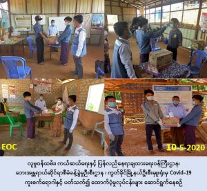 လူမှုဝန်ထမ်း၊ ကယ်ဆယ်ရေးနှင့် ပြန်လည်နေရာချထားရေးဝန်ကြီးဌာန၊ ဘေးအန္တရာယ်ဆိုင်ရာ စီမံခန့်ခွဲမှုဦးစီးဌာန၊ ကွတ်ခိုင်မြို့နယ်ဦးစီးမှူးရုံးမှ တာဝန်ရှိသူများသည် ကရုဏာလူမှုကူညီရေး အသင်းနှင့်ပူးပေါင်း၍ (၁၀-၅-၂၀၂၀) ရက်နေ့တွင် ကွတ်ခိုင်မြို့နယ်အတွင်း IDP(camps) မိုင်းယု(ကုန်စုံ) အိမ်ထောင်စု (၈၂)စု၊ လူဦးရေ (၄၂၄)ဦး ၊ မိုင်းယုလေး အိမ်ထောင်စု (၇၇)စု၊ လူဦးရေ (၃၈၉)ဦး ၊ နမ့်ဖက်ကာနှစ်ခြင်းအသင်းတော် အိမ်ထောင်စု (၅၇)စု၊ လူဦးရေ(၂၆၃)ဦး ၊ နမ့်ဖက်ကာ နယ်မြေ (၄) အိမ်ထောင်စု(၃၉)စု၊ လူဦးရေ (၁၂၂) ဦး ၊စုစုပေါင်း အိမ်ထောင်စု (၂၅၄)စု၊ လူဦးရေ (၁၁၉၈) ဦး စသည့် IDP(camps)၊ (၄) ခုအတွက် စခန်း(၁)ခုလျှင် အပူချိန်တိုင်းစက်(၁)ခု (၈၀၀၀၀/-)နှုန်း၊ လက်ဆေးဆပ်ပြာ လူတစ်ဦးလျှင် (၂) ခဲနှုန်း ဖြင့်စုစုပေါင်း (၂၃၉၆) ခဲကို ထောက်ပံ့ပေးခဲ့ပြီး အပူချိန်တိုင်းခြင်းတို့ကို ဆောင်ရွက်ပေးခဲ့ကြောင်း သတင်းရရှိပါသည်။