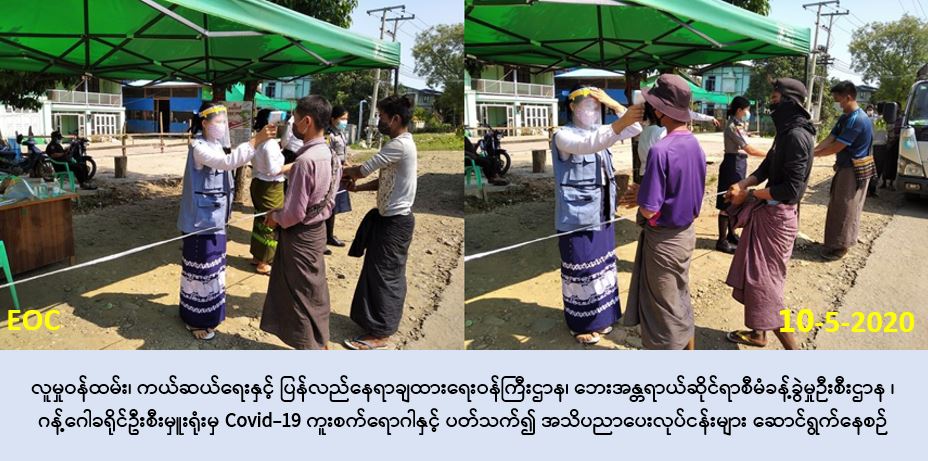 လူမှုဝန်ထမ်း၊ ကယ်ဆယ်ရေးနှင့် ပြန်လည်နေရာချထားရေးဝန်ကြီးဌာန၊ ဘေးအန္တရာယ်ဆိုင်ရာ စီမံခန့်ခွဲမှုဦးစီးဌာန၊ ဂန့်ဂေါခရိုင်ဦးစီးမှူးရုံးမှ တာဝန်ရှိသူများသည် မြို့နယ်အထွေထွေ အုပ်ချုပ် ရေးဦးစီးဌာန၊ ဌာနဆိုင်ရာများမှ တာဝန်ရှိသူများနှင့်ပူးပေါင်း၍ (၁၀-၅-၂၀၂၀)ရက်နေ့ ၊(ဝ၈:၃၀) နာရီမှ (၁၇:၃၀) နာရီအချိန်ထိ လတ်တလောနိုင်ငံအသီးသီးတွင် ကူးစက်ပြန့်ပွားလျက်ရှိသည့် COVID-19 ရောဂါ ကြိုတင်ကာကွယ်ရေးအတွက် ဂန့်ဂေါခရိုင်အတွင်းယာဉ် ဝင်/ထွက်အတွက် စီးနင်းလိုက်ပါလာသော ခရီးသည်များအား ကိုယ်အပူချိန်တိုင်းထွာပေးခြင်းနှင့် ပြည်တွင်း/ပမှ ပြန်လာသူများအား စာရင်းပြုစုခြင်း တို့ကို ဆောင်ရွက်ခဲ့ကြောင်း သတင်းရရှိပါသည်။