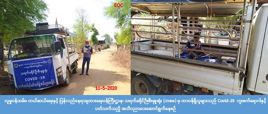 လူမှုဝန်ထမ်း၊ ကယ်ဆယ်ရေးနှင့်ပြန်လည်နေရာချထားရေးဝန်ကြီးဌာန၊ ဘေးအန္တရာယ်ဆိုင်ရာ စီမံခန့်ခွဲ မှုဦးစီးဌာန၊ သရက်ခရိုင်ဦးစီးမှူးရုံးမှတာဝန်ရှိသူများနှင့် မြတ်ပါရမီပရဟိတအသင်းတို့ ပူးပေါင်း၍ (၁၁-၅-၂၀၂၀) ရက်နေ့တွင် သရက်မြို့နယ်အတွင်းရှိ စစ်သားကျေးရွာ၊ သာစည်ကျေးရွာ၊ ပေါက်ဖြူ ကျေးရွာနှင့် ရွှေပန်းကိုင်းကျေးရွာတို့တွင် COVID-19 ကူးစက်ရောဂါနှင့်ပတ်သက်၍ အသိပညာပေးဆောင်ရွက်ခဲ့ ကြောင်း သိရှိရပါသည်။