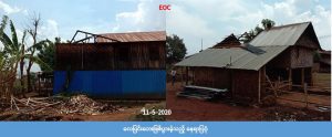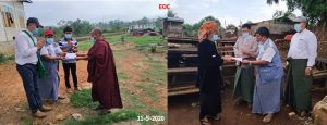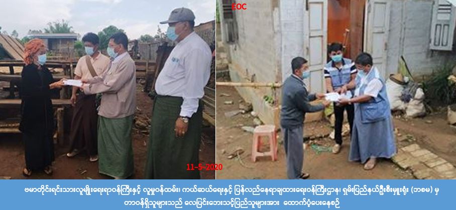 လူမူဝန်ထမ်း၊ ကယ်ဆယ်ရေးနှင့်ပြန်လည်နေရာချထားရေးဝန်ကြီးဌာန၊ ဘေးအန္တရာယ်ဆိုင်ရာစီမံခန့်ခွဲ မူဦးစီးဌာန၊ ရှမ်းပြည်နယ်ဦးစီးမှူးရုံးမှတာဝန်ရှိသူများ သည် (၁၁-၅-၂၀၂၀) ရက်နေ့တွင် ဗမာတိုင်းရင်း သားလူမျိုးရေးရာဝန်ကြီးနှင့်အတူ ရှမ်းပြည်နယ်တောင်ပိုင်း နမ့်စန်မြို့နယ်တွင် (၁၀-၅-၂၀၂၀) ရက်နေ့ ညနေပိုင်းက လေပြင်းဒဏ်ခံစားရမူကြောင့် ထိခိုက်ပျက်စီးမှုကြုံတွေ့ခဲ့ရသောကျေးရွာအုပ်စု (၂) စု၊ ကျေးရွာပေါင်း (၅)ရွာမှ ပြိုလဲပျက်စီးနေအိမ်၁လုံး အမိုးလန်ထိခိုက်ပျက်စီးနေအိမ် (၁၄၆) လုံး၊ အမိုးလန် ဘုန်းတော်ကြီးကျောင်း (၃)ကျောင်းနှင့် ခရစ်ယာန်ဘုရားရှိခိုးကျောင်း (၁)ကျောင်းအတွက် အိမ်ဆောက် ပစ္စည်းဖိုး (၁၀,၄၀၅,၀၀၀)ကျပ်နှင့် လူဦးရေ (၆၉၀) ဦးအတွက် ဆန်ရိက္ခာ (၃) ရက်စာ (၆၂၁,၀၀၀)ကျပ်၊ စုစုပေါင်းရန်ပုံငွေ (၁၁,၀၂၆,၀၀၀)ကျပ်နှင့် ရှမ်းပြည်နယ်အစိုးရအဖွဲ့မှအလားတူ ထောက်ပံငွေ (၆,၁၀၀,၀၀၀) ကျပ်၊ စုစုပေါင်းရန်ပုံငွေ (၁၇၁) သိန်းကျော်နှင့် အိမ်ထောင်စု (၁)စုလျှင် ကယ်ဆယ်ရေး ပစ္စည်း (၁၇) မျိုးစီတို့ကို ကွင်းဆင်းထောက်ပံ့ပေးခဲ့ကြောင်း သိရှိရပါသည်။