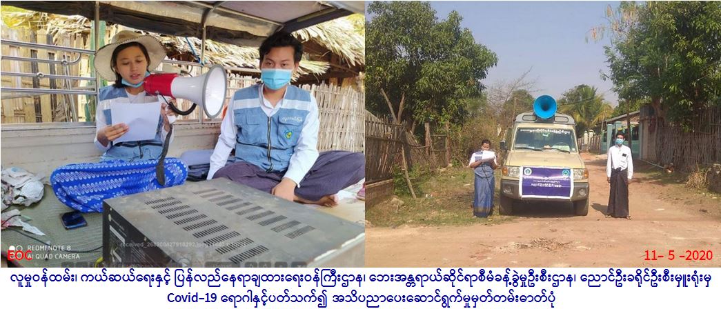 လူမှုဝန်ထမ်း၊ ကယ်ဆယ်ရေးနှင့်ပြန်လည်နေရာချထားရေးဝန်ကြီးဌာန၊ ဘေးအန္တရာယ်ဆိုင်ရာစီမံခန့်ခွမှုဦးစီးဌာန၊ ညောင်ဦး ခရိုင်ဦးစီးမှူးရုံးမှ တာဝန်ရှိသူများသည် မြတ်ဒါနအောက်ဆီဂျင်အခမဲ့နှင့် လူမှုကူညီရေးအသင်းမှ အဖွဲ့ဝင်များနှင့်အတူ (၁၁.၅.၂၀၂၀) ရက်နေ့တွင် ညောင်ဦးမြို့ရှိ ကျေးရွာအုပ်စု (၆) စုမှ ရွာပေါင်း (၁၂) ရွာနှင့် ကျောက်ပန်းတောင်းမြို့ပေါ်ရပ်ကွက် (၉) ရပ်ကွက်နှင့် ဘဲများအုပ်စု၊ စီရင်စုကျေးရွာသို့ သွားရောက်၍ ရပ်ကွက်/ကျေးလက်နေ ပြည်သူများအား Covid -19 ရောဂါ အကြောင်း သိကောင်းစရာများကို လှဲ့လှည် အသိပညာပေးဟောပြောခဲ့ပါကြောင်း သတင်းရရှိပါသည်။