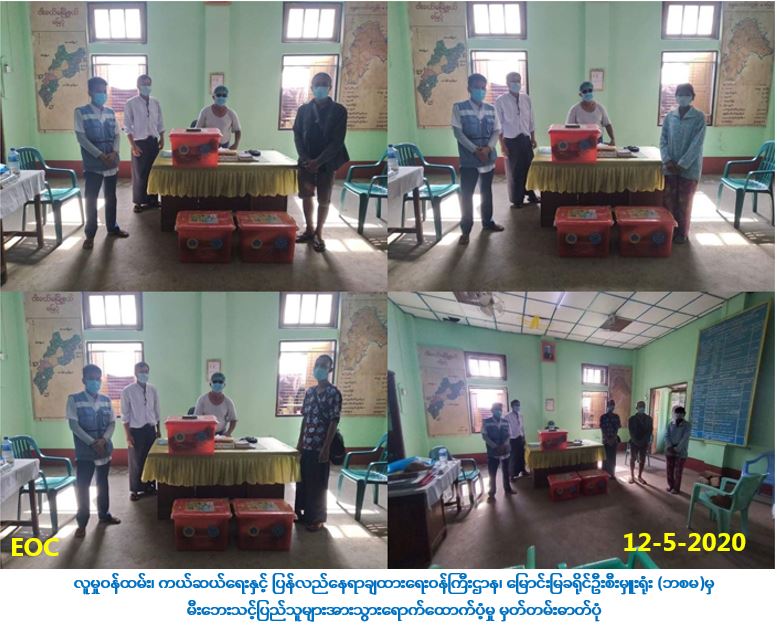လူမှုဝန်ထမ်း၊ ကယ်ဆယ်ရေးနှင့် ပြန်လည်နေရာချထားရေးဝန်ကြီးဌာန၊ ဘေးအန္တရာယ်ဆိုင်ရာစီမံ ခန့်ခွဲမှုဦးစီးဌာန၊ မြောင်းမြခရိုင်ဦးစီးမှူးရုံးမှ တာဝန်ရှိသူများသည် (၉-၅-၂၀၂၀)ရက်နေ့တွင် မြောင်းမြခရိုင်၊ ဝါးခယ်မမြို့နယ်၊ အထက်ပေကုန်းကျေးရွာအုပ်စု၊ အထက်ပေကုန်းကျေးရွာ၌ ဖြစ်ပွားခဲ့သော မီးဘေးကြောင့် မီးဘေးသင့် နေအိမ်(၃)လုံး၊ အိမ်ထောင်စု (၃)စု၊ လူဦးရေ(၈)ဦး တို့အတွက် အိမ်ဆောက်ပစ္စည်းရန်ပုံငွေ(၅၀၀,၀၀၀ိ/-)ကျပ်၊ ဆန်ရိက္ခာရန်ပုံငွေ(၁၆,၈၀၀ိ/-)ကျပ်၊ စုစုပေါင်းရန်ပုံငွေ (၅၁၆,၈၀၀ိ/-)ကျပ်နှင့် ကယ်ဆယ်ရေးပစ္စည်း (၁၇)မျိုးတို့အား (၁၂-၅-၂၀၂၀) ရက်နေ့တွင် ဝါးခယ်မမြို့နယ်၊ ရွှေလောင်းမြို့၊ အထွေထွေအုပ်ချုပ်ရေးဦးစီးဌာနတွင် ဘေးသင့် ပြည်သူများထံ လက်ဝယ်အရောက် သွားရောက်ထောက်ပံ့ပေးအပ်ခဲ့ကြောင်း သတင်းရရှိခဲ့ပါသည်။