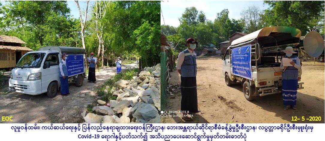 လူမှုဝန်ထမ်း၊ ကယ်ဆယ်ရေးနှင့်ပြန်လည်နေရာချထားရေးဝန်ကြီး ထားဌာန၊ ဘေးအန္တရာယ်ဆိုင်ရာစီမံခန့်ခွဲမှုဉီးစီးဌာန၊ လပွတ္တာ ခရိုင်ဉီးစီးမှူးရုံးမှ တာဝန်ရှိသူများသည် (၁၂.၅.၂၀၂၀) ရက်နေ့တွင်၊ နံနက်(၀၉:၀၀) နာရီမှ (၁၂:၀၀)နာရီအချိန်အထိ လပွတ္တာ မြို့နယ်၊ ဘာတာကုန်း ကျေးရွာအုပ်စု၊ ဘာတာကုန်းကျေးရွာ၊ အနန်းကုန်းကျေးရွာ၊ ကနစိုငုတ်ကျေးရွာနှင့် ကျောက်အိုင်ကျေးရွာ များသို့သွားရောက်၍ COVID – 19 နှင့်ပတ်သက်၍ ဆောင်ရန်/ရေှာင်ရန်များအား လိုက်နာဆောင်ရွက်သွားကြရန် လှည့်လည်၍ အသိပညာပေး ပြောကြားခဲ့ပါကြောင်း သတင်းရရှိပါသည်။