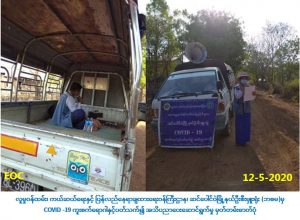 လူမှုဝန်ထမ်း၊ ကယ်ဆယ်ရေးနှင့် ပြန်လည်နေရာချထားရေးဝန်ကြီးဌာန၊ ဘေးအန္တရာယ်ဆိုင်ရာစီမံ ခန့်ခွဲမှုဦးစီးဌာန၊ ဆင်ပေါင်ဝဲမြို့နယ်ဦးစီးမှူးရုံးမှ တာဝန်ရှိသူများသည် (၁၂-၅-၂၀၂၀) ရက်နေ့၊ နံနက် (၀၇:၀၀) နာရီအချိန်တွင် ပြန်ကြားရေးနှင့်ပြည်သူ့ဆက်ဆံရေးဦးစီးဌာနတို့နှင့်ပူးပေါင်း၍ ဆင်ပေါင်ဝဲ မြို့နယ်၊ ဂွေးတောက်ကျေးရွာအုပ်စု၊ ဂွေးတောက်ကျေးရွာ၊ ဝန်ကုန်းကျေးရွာ၊ဖောင်အိုင်ကျေးရွာ၊ ကျောက်မြေကျေးရွာများသို့သွားရောက်ပြီး COVID – 19 ရောဂါကူးစက်ပျံ့နှံ့မှုများနှင့် ပတ်သက်၍ အသိပညာပေးဟောပြောမှုများ ဆောင်ရွက်ခဲ့ကြောင်း သတင်းရရှိပါသည်။