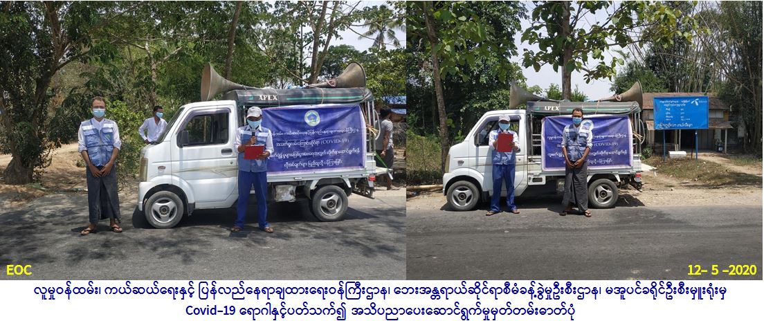 လူမှုဝန်ထမ်း၊ ကယ်ဆယ်ရေးနှင့်ပြန်လည်နေရာချထား ရေးဝန်ကြီးထားဌာန၊ ဘေးအန္တရာယ်ဆိုင်ရာစီမံခန့်ခွဲမှုဉီးစီးဌာန၊ မအူပင်ခရိုင်ဦးစီးမှူးရုံးမှတာဝန်ရှိသူများသည် (၁၂-၅-၂၀၂၀)ရ က်နေ့တွင် ဓနုဖြူမြို့နယ်၊ ရေတွင်းကုန်းကျေးရွာ အုပ်စုအတွင်း ရှိ ကျေးရွာ ခွဲ(၄)ရွာ၌ Covid-19 ရောဂါကူးစက် ပျံ့ပွားမှုများ မဖြစ်ပွားစေရန်တွက် အများပြည်သူ သိရှိလိုက်နာဆောင်ရွက်ရန် အချက်များ အား လော်စပီကာ၊ ဟန်းစပီကာများဖြင့် လှည့်လည်ဟောပြောခဲ့ပါကြောင်း သတင်းရရှိပါသည်။