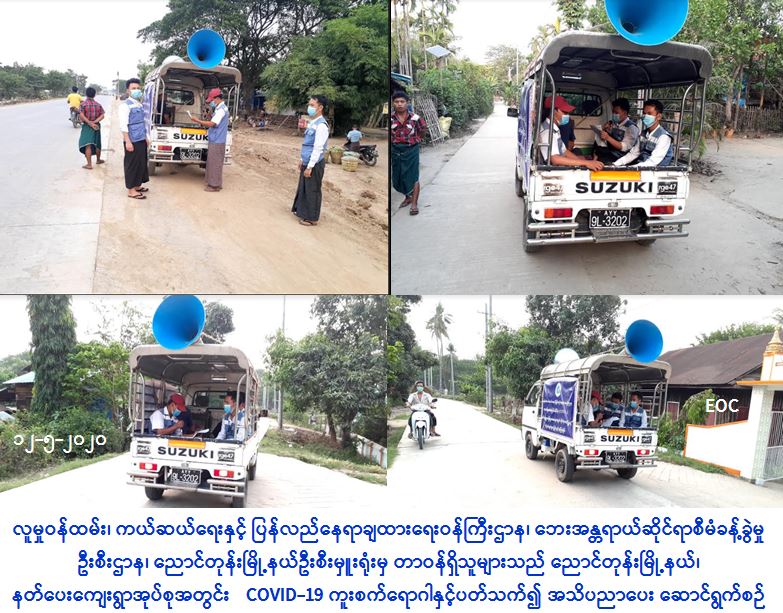 Covid-19 ကာကွယ်၊ တားဆီး၊ ထိန်းချုပ်၊ ကုသရေးဆိုင်ရာ ပြည်သူအသိပညာပေး အသံဖိုင်အား ဖွင့်လှစ်၍ အသိပညာပေးခြင်းများ ဆောင်ရွက်ခဲ့ကြောင်း သတင်းရရှိပါသည်။
