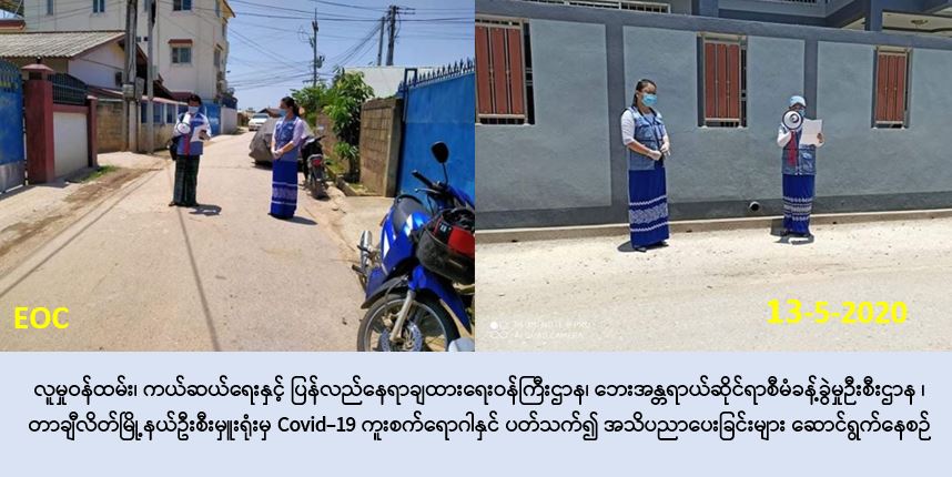 Covid-19 ရောဂါကူးစက်ပျံ့နှံ့မှုမဖြစ်ပွားစေရန် သိရှိလိုက်နာဆောင်ရွက်ရမည့်အချက်များကို ရှမ်းဘာသာ၊ မြန်မာဘာသာဖြင့် လှည့်လည်ဆော်သြခဲ့ပြီး အသိပညာပေးလုပ်ငန်းများ ဆောင် ရွက်ခဲ့ကြောင်း သတင်းရရှိပါသည်။