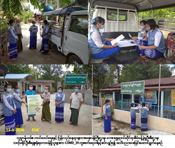 လူမှုဝန်ထမ်း၊ ကယ်ဆယ်ရေးနှင့် ပြန်လည်နေရာချထားရေးဝန်ကြီးဌာန၊ ဘေးအန္တရာယ်ဆိုင်ရာစီမံခန့်ခွဲမှုဉီးစီးဌာန၊ သထုံခရိုင်ဦးစီးမှူးရုံးမှတာဝန်ရှိသူများသည် (၁၃-၅-၂၀၂၀) ရက်နေ့၊ (၁၀:၀၀)နာရီအချိန်မှ (၁၅:၃၀)နာရီအချိန်အထိ သထုံခရိုင်၊ ပေါင်မြို့နယ်၊ အုန်းတပင်ကျေးရွာ၊ အလယ်ရွာ၊ ကော့ကံကျေးရွာနှင့် ကျောက်စရစ်ကျေးရွာတို့၌ COVID-19 ကူးစက်ရောဂါနှင့်စပ်လျဉ်း၍ ဆောင်ရန်/ရှောင်ရန်အချက်များကို အသိပညာပေးနှိုးဆော်ခြင်း၊ ဗီနိုင်းပိုစတာ ကပ်ခြင်းတို့ဆောက်ရွက်ခဲ့ပါကြောင်း သတင်းရရှိပါသည်။