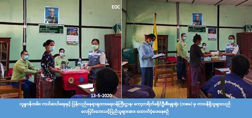 လူမှုဝန်ထမ်း၊ ကယ်ဆယ်ရေးနှင့် ပြန်လည်နေရာချထားရေးဝန်ကြီးဌာန၊ ဘေးအန္တရာယ်ဆိုင်ရာ စီမံခန့်ခွဲ မှုဦးစီးဌာန၊ ကော့ကရိတ်ခရိုင်ဦးစီးမှူးရုံးမှတာဝန်ရှိသူများသည် ကော့ကရိတ်မြို့နယ်၊ ကျေးရွာအုပ်စု (၆) စုအတွင်းရှိ ကျေးရွာပေါင်း (၉) ရွာတို့၌ (၁၁-၅-၂၀၂၀) ရက်နေ့၊ (၁၆:၃၀) အချိန်မှစ၍ ဖြစ်ပွားခဲ့သော လေပြင်းတိုက်ခတ်မှုကြောင့် ပြိုကျပျက်စီး နေအိမ်(၂)လုံး၊ အမိုးလန်တစ်စိတ်တစ်ပိုင်းပျက်စီးနေအိမ် (၉) လုံးအတွက် အိမ်ဆောက်ပစ္စည်းဖိုးငွေ (၉၈၅,၀၀၀) ကျပ်၊ လူဦးရေ (၆၈)ဦးတို့အတွက် ဆန်ရိက္ခါဖိုး (၇) ရက်စာအတွက် ထောက်ပံ့ငွေ (၁၄၂,၈၀၀) ကျပ်၊ သေဆုံးသူ(၁)ဦး အတွက် ထောက်ပံ့ငွေ (၃၀၀,၀၀၀) ကျပ်၊ ဒဏ်ရာရသူ (၁) ဦးအတွက် ထောက်ပံ့ငွေ (၅၀,၀၀၀) ကျပ်၊ စုစုပေါင်း ထောက်ပံ့ငွေ (၁,၄၇၇,၈၀၀) ကျပ်နှင့် ပြိုကျပျက်စီးသွားသော အိမ်ထောင်စု(၂) စုအတွက် ကယ်ဆယ်ရေးပစ္စည်း (၁၆) မျိုးစီတို့ကို (၁၃-၅-၂၀၂၀)ရက်နေ့တွင် အထွေထွေအုပ်ချုပ်ရေးအစည်းအဝေးခန်းမ၌ ကော့ကရိတ်ခရိုင်အုပ်ချုပ်ရေးမှူး၊ မြို့နယ်အုပ်ချုပ်ရေးမှူးတို့နှင့်အတူ ဘေးသင့်ပြည်သူများလက်ဝယ်အရောက် ထောက်ပံ့ပေးအပ်ခဲ့ ကြောင်း သိရှိရပါသည်။