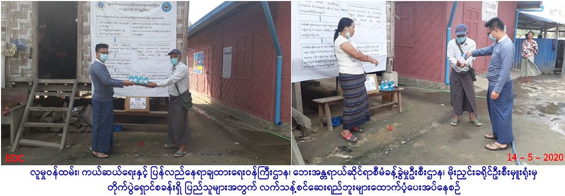 လူမှုဝန်ထမ်း၊ ကယ်ဆယ်ရေးနှင့် ပြန်လည်နေရာချထားရေး ဝန်ကြီးဌာန၊ ဘေးအန္တရာယ်ဆိုင်ရာစီမံခန့်ခွဲမှုဦးစီးဌာန၊ မိုးညှင်းခရိုင် ဦးစီးမှူးရုံးမှ တာဝန်ရှိသူများသည် (၁၄-၅-၂၀၂၀) ရက်နေ့ (၀၉:၃၀) နာရီအချိန်၌ မိုးညှင်းမြို့နယ်၊ နန့်မွန်းမြို့၊ နန့်မွန်းနှစ်ခြင်း ဘုရားကျောင်း IDPs စခန်း၊ အိမ်ထောင်စု(၂၀)စုမှ လူဦးရေ(၁၀၄)ဦး အတွက် လက်သန့်စင်ဆေးရည် (၄၀) ဗူးအား သွားရောက်ထောက်ပံ့ပေးခဲ့ကြောင်း သတင်းရရှိပါသည်။