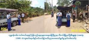 လူမှုဝန်ထမ်း၊ ကယ်ဆယ်ရေးနှင့် ပြန်လည်နေရာချထားရေးဝန်ကြီးဌာန၊ ဘေးအန္တရာယ်ဆိုင်ရာစီမံ ခန့်ခွဲမှုဦးစီးဌာန၊ မွန်ပြည်နယ်၊ သထုံခရိုင်၊ ဘီးလင်းမြို့နယ်ဦးစီးမှုးရုံးမှတာဝန်ရှိသူများသည် (၁၄-၅-၂၀၂၀)ရက်နေ့၊ (၀၈း၀၀) နာရီမှ (၁၂း၀၀) နာရီထိ ဘီးလင်းမြို့နယ်၊ ပေါက်တောကျေးရွာအုပ်စု အတွင်းရှိ ပေါက်တောကျေးရွာ၊ ပေါက်ကွဲကျေးရွာ၊ ကျောက်တလုံးကျေးရွာ၊ ကူးတို့ဆိပ်ကျေးရွာနှင့် ရှမ်းချောင်ကျေးရွာတို့တွင် COVID-19 ကူးစက်ရောဂါနှင့်ပက်သက်ပြီး ဆောင်ရန်/ ရှောင်ရန်တို့ကို ကျေးရွာအုပ်ချုပ်ရေးမှူးများနှင့်အတူ ပူးပေါင်း၍ဆောင်ရွက်လျက်ရှိကြောင်း သတင်းရရှိပါသည်။