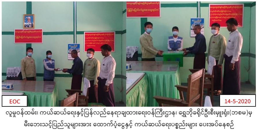 လူမှုဝန်ထမ်း၊ ကယ်ဆယ်ရေးနှင့်ပြန်လည်နေရာချထားရေးဝန်ကြီးဌာန၊ ဘေးအန္တရာယ်ဆိုင်ရာစီမံခန့်ခွဲမှုဦးစီးဌာန၊ ရွှေဘိုခရိုင်ဦးစီးမှူးရုံးမှတာ၀န်ရှိသူများသည် ၀က်လက်မြို့နယ်၊ ရွှေကျင်(အနောက်)ကျေးရွာတွင် (၁၃.၅..၂၀၂၀)နေ့ ( ၂၁: ၀၀)နာရီတွင် မီးလောင်ကျွမ်းမှုကြောင့် ပျက်စီးခဲ့သည့် အိမ်ခြေ(၁)လုံး၊ အိမ်ထောင်စု(၁)စုမှ လူဦးရေ(၃)ဦးအတွက် ကယ်ဆယ်ရေးပစ္စည်း(၁၇)မျိုး (၁)အိမ်ထောင်စာ၊ ဆန်ရိက္ခာဖိုး( ၆၃၀ဝိ/-) ၊ အိမ်ဆောက်ပစ္စည်းဖိုး(၁၀၀၀၀ဝိ/-)၊ စုစုပေါင်း(၁၀၆၃၀ဝိ/-)ကို (၁၄. ၅..၂၀၂၀) နေ့ ( ၁၂:၁၅ )နာရီတွင် မြို့နယ်အထွေထွေအုပ်ချုပ်ရေးဦးဌာနမှတစ်ဆင့် ဘေးသင့်ပြည်သူများထံသို့ သွားရောက်ထောက်ပံ့ပေးအပ်ခဲ့ကြောင်း သတင်းရရှိပါသည်။