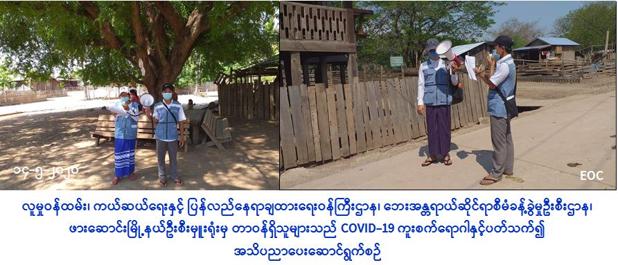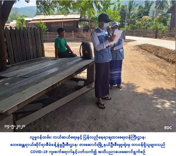 လူမှုဝန်ထမ်း၊ ကယ်ဆယ်ရေးနှင့် ပြန်လည်နေရာချထားရေးဝန်ကြီးဌာန၊ ဘေးအန္တရာယ်ဆိုင်ရာစီမံခန့်ခွဲမှုဦးစီးဌာန၊ ဖားဆောင်းမြို့နယ်ဦးစီးမှူးရုံးမှ တာဝန်ရှိသူများသည် (၁၄-၅-၂၀၂၀) ရက်နေ့တွင် ဖားဆောင်းမြို့နယ်၊ ဝမ်အောင်းကျေးရွာအုပ်စု၊ ဝမ်အောင်း(ကယား)ကျေးရွာရှိ ပြည်သူများအား COVID-19 ကူးစက်ရောဂါပျံ့နှံ့မှုမဖြစ်ပွားစေရန် သိရှိလိုက်နာရန်အချက်များနှင့် သဘာဝဘေးအန္တရာယ်နှင့်စပ်လျဉ်းသည့် ဆောင်ရန်၊ ရှောင်ရန်များကို အသိပညာပေးဆောင်ရွက်ခဲ့ကြောင်း သတင်းရရှိပါသည်။