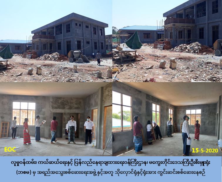 လူမှုဝန်ထမ်း၊ ကယ်ဆယ်ရေးနှင့် ပြန်လည်နေရာချထားရေးဝန်ကြီးဌာန၊ ဘေးအန္တရာယ်ဆိုင်ရာစီမံခန့်ခွဲမှုဦးစီးဌာန၊ မကွေးတိုင်းဒေသကြီးဦးစီးမှူးရုံးမှ တာဝန်ရှိသူများသည် (၁၅-၅-၂၀၂၀) ရက်နေ့တွင် တိုင်းဒေသကြီးအစိုးရ ရန်ပုံငွေဖြင့်တည်ဆောက်သော မကွေးတိုင်းဦးစီးမှူးရုံးနှင့် သိုလှောင်ရုံအား တိုင်းဒေသကြီးဦးစီးမှူး၊ အရည်အသွေးစစ်ဆေးရေးအဖွဲ့နှင့်အတူ (75%) ပြီးစီးမူအားသွားရောက်စစ်ဆေးခဲ့ပါကြောင်း သိရှိရပါသည်။