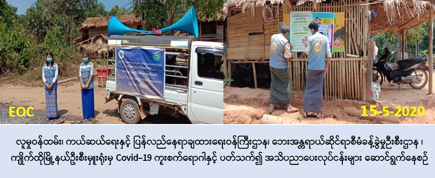 လူမှုဝန်ထမ်း၊ ကယ်ဆယ်ရေးနှင့် ပြန်လည်နေရာချထားရေးဝန်ကြီးဌာန၊ ဘေးအန္တရာယ်ဆိုင်ရာ စီမံခန့်ခွဲမှုဦးစီးဌာန၊ ကျိုက်ထိုမြို့နယ်ဦးစီးမှူးရုံးမှ တာဝန်ရှိသူများသည် (၁၅-၅-၂၀၂၀)ရက်နေ့၊ (၀၈:၀၀)နာရီအချိန်မှ (၁၅:၃၀)နာရီအချိန်ထိ သထုံခရိုင်၊ ကျိုက်ထိုမြို့နယ်၊ မာလာဖူးကျေးရွာနှင့် ရေဝေကျေးရွာများအတွင်းရှိ လမ်းဆုံလမ်းခွများနှင့် လူစည်ကားရာနေရာများတွင် COVID -19 ကူးစက်ရောဂါနှင့်ပတ်သက်၍ ကြိုတင်ကာကွယ် ထိန်းချုပ်နိုင်ရန် ပြည်သူသို့ အသိပညာပေး ပန်ကြားချက်များအား လှည့်လည်အသိပေး ကြေငြာခြင်းများဆောင်ရွက်ခဲ့ကြောင်း သတင်း ရရှိပါသည်။