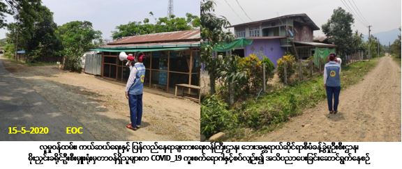 လူမှုဝန်ထမ်း၊ ကယ်ဆယ်ရေးနှင့် ပြန်လည်နေရာချထားရေးဝန်ကြီးဌာန၊ ဘေးအန္တရာယ်ဆိုင်ရာစီမံခန့်ခွဲမှုဉီးစီးဌာန၊ မိုးညှင်းခရိုင်ဦးစီးမှူးရုံးမှတာဝန်ရှိသူများသည် (၁၅-၅-၂၀၂၀) ရက်နေ့၊ (၁၀:၃၀)နာရီအချိန်တွင် မိုးကောင်းမြို့နယ်၊ နမ္မနကျေးရွာ၊ တောင်နီကျေးရွာ၊ ကညှင်မြိုင်ကျေးရွာတို့၌ COVID-19 ကူးစက်ရောဂါနှင့်စပ်လျဉ်း၍ ဆောင်ရန်/ရှောင်ရန်အချက်များကို အသိပညာပေးနှိုးဆော်ခဲ့ပါကြောင်း သတင်းရရှိပါသည်။
