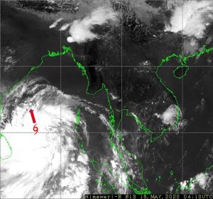 ၃။ (က) အဆိုပါ မုန်တိုင်းငယ် (Depression) သည် နောက် (၆) နာရီအတွင်း အားကောင်းသော မုန်တိုင်းငယ် (Deep Depression) အဖြစ်သို့ လည်းကောင်း၊ နောက် (၁၂) နာရီအတွင်း ဆိုင်ကလုန်း မုန်တိုင်း (Cyclonic Storm) အဖြစ်သို့လည်းကောင်း ရောက်ရှိနိုင်ပြီး၊ ကနဦးတွင် မြောက်-အနောက် မြောက်ဘက်သို့ ရွေ့လျားပြီးနောက် (၁၇.၅.၂၀၂၀) ရက်နေ့ နောက်ပိုင်းတွင် မြောက်-အရှေ့မြောက်ဘက် သို့ကွေ့ကာ ရွေ့လျားမည်ဟု ခန့်မှန်းရပါသည်။