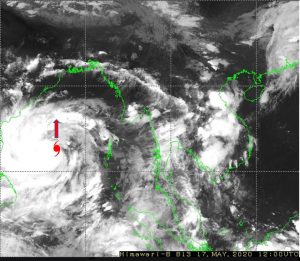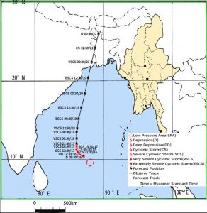 ၁။ (က) ယနေ့မြန်မာစံတော်ချိန် (၁၈:၃၀)နာရီအချိန် တိုင်းထွာချက်များအရ ဘင်္ဂလားပင်လယ်အော် တောင်ပိုင်းတွင် ဖြစ်ပေါ်နေသော အားကောင်းသော ဆိုင်ကလုန်းမုန်တိုင်း (Severe Cyclonic Storm) အမ်ဖန် (AMPHAN) သည် မြောက်ဘက်သို့ ဖြည်းညင်းစွာ ရွေ့လျားခဲ့ပြီး၊ အားအလွန်ကောင်းသော ဆိုင်ကလုန်းမုန်တိုင်း (Very Severe Cyclonic Storm) အမ်ဖန် (AMPHAN) အဖြစ်သို့ ရောက်ရှိခဲ့ပါသည်။ အဆိုပါ အားအလွန် ကောင်းသော ဆိုင်ကလုန်းမုန်တိုင်း (Very Severe Cyclonic Storm) အမ်ဖန် (AMPHAN) သည် အိန္ဒိယနိုင်ငံ၊ ပါရာဒစ်ပ်မြို့(Paradip) (ဩရိဿ-Odisha) ၏ တောင် ဘက် ရေမိုင် (၅၁၅)မိုင်ခန့်၊ ဒီဂါမြို့(Digha)၏ တောင်-အနောက်တောင်ဘက် ရေမိုင် (၅၉၅)မိုင်ခန့်၊ ဘင်္ဂလားဒေ့ရှ်နိုင်ငံ၊ ကမ်ပူပါရာမြို့ (Khepupara)၏ အနောက်တောင်ဘက် ရေမိုင် (၆၆၀)မိုင်ခန့်၊ မြန်မာနိုင်ငံ၊ ကိုကိုးကျွန်းမြို့(Coco Island)၏ အနောက်-အနောက် တောင်ဘက် ရေမိုင် (၄၅၀)မိုင်ခန့်နှင့် ပုသိမ်မြို့ (Pathein) ၏ အနောက်တောင်ဘက် ရေမိုင် (၅၉၀)မိုင်ခန့်အကွာ ပင်လယ်ပြင်ကို ဗဟိုပြုနေပါသည်။