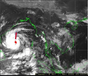 ၁။ (က) ယနေ့မြန်မာစံတော်ချိန် (၀၅:၃၀)နာရီအချိန် တိုင်းထွာချက်များအရ ဘင်္ဂလားပင်လယ် အော်တောင်ပိုင်းတွင် ဖြစ်ပေါ်နေသော အားအလွန်ကောင်းသော ဆိုင်ကလုန်းမုန်တိုင်း (Very Severe Cyclonic Storm) အမ်ဖန် (AMPHAN)သည် မြောက်-အရှေ့မြောက် ဘက်သို့ ရွေ့လျားခဲ့ပြီး၊ ဘင်္ဂလားပင်လယ်အော်တောင်ပိုင်းနှင့် ယင်းနှင့်ဆက်စပ်လျက် ရှိသော ဘင်္ဂလားပင်လယ်အော်အလယ်ပိုင်းသို့ ရောက်ရှိခဲ့ပါသည်။ အဆိုပါ အားအလွန် ကောင်းသော ဆိုင်ကလုန်းမုန်တိုင်း (Very Severe Cyclonic Storm) အမ်ဖန် (AMPHAN) သည် အိန္ဒိယနိုင်ငံ၊ ပါရာဒစ်ပ်မြို့ (Paradip) (ဩရိဿ-Odisha) ၏ တောင်ဘက် ရေမိုင် (၄၄၀)မိုင်ခန့်၊ ဒီဂါမြို့(Digha)၏ တောင်-အနောက်တောင်ဘက် ရေမိုင် (၅၃၀)မိုင်ခန့်၊ ဘင်္ဂလားဒေ့ရှ်နိုင်ငံ၊ ကမ်ပူပါရာမြို့ (Khepupara)၏ တောင်-အနောက်တောင်ဘက် ရေမိုင် (၅၉၀)မိုင်ခန့်၊ မြန်မာနိုင်ငံ၊ ကိုကိုးကျွန်းမြို့(Coco Island) ၏ အနောက်-အနောက်တောင်ဘက် ရေမိုင် (၄၁၀)မိုင်ခန့်နှင့် ပုသိမ်မြို့ (Pathein)၏ အနောက်တောင်ဘက် ရေမိုင် (၅၄၀)မိုင်ခန့်အကွာ ပင်လယ်ပြင်ကို ဗဟိုပြုနေပါသည်။