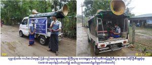 လူမှုဝန်ထမ်း၊ ကယ်ဆယ်ရေးနှင့် ပြန်လည်နေရာချထားရေး ဝန်ကြီးဌာန၊ ဘေးအန္တရာယ်ဆိုင်ရာစီမံခန့်ခွဲမှုဦးစီးဌာန၊ မအူပင်ခရိုင် ဦးစီးမှူးရုံးမှ တာဝန်ရှိသူများသည် (၁၈-၅-၂၀၂၀) ရက်နေ့တွင် ပန်းတနောမြို့နယ်၊ ဆိအင်းမကျေးရွာအုပ်စုအတွင်းရှိ ကျေးရွာခွဲ (၅) ရွာ၌ Covid-19 ရောဂါ ကူးစက်ပျံ့ပွားမှုများ မဖြစ်ပွားစေရန်တွက် အများပြည်သူသိရှိလိုက်နာဆောင်ရွက်ရန်အချက်များအား လော်စပီကာ၊ ဟန်းစပီကာများဖြင့် လှည့်လည်ဟောပြောခဲ့ပါကြောင်း သတင်းရရှိပါသည်။