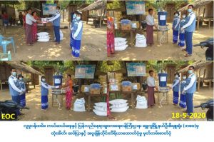 လူမှုဝန်ထမ်း၊ ကယ်ဆယ်ရေးနှင့် ပြန်လည်နေရာချထားရေးဝန်ကြီးဌာန၊ ဘေးအန္တရာယ်ဆိုင်ရာစီမံ ခန့်ခွဲမှုဦးစီးဌာန၊ ရွှေကူမြို့နယ်ဦးစီးမှူးရုံးမှ တာဝန်ရှိသူများသည် (၁၈-၅-၂၀၂၀) ရက်နေ့၊ နံနက် (၁၄း၀၀)နာရီအချိန်တွင် ရွှေကူမြို့၊ ကက်သလစ်I DPစခန်း၊ အိမ်ထောင်စု (၄၂)စု၊ လူဦးရေ (၁၇၆)ဦးတို့အတွက် ထုံး(၁၀)အိတ်၊ အပူချိန်တိုင်းကိရိယာ(၁)ခု၊ ဆပ်ပြာ(၁၇၆)ခဲ၊ ဘေစင်(၁)စုံ၊ လက်သန့်ဆေးရည်(၈၄)ဗူး၊Hand Speaker(၁)ခု၊ Memory Stick(၁)ခုနှင့် အဝတ်Mask (၃၅၂)ခုစသည်များကို ထောက်ပံ့ပေးအပ်ခဲ့ကြောင်း သတင်းရရှိပါသည်။