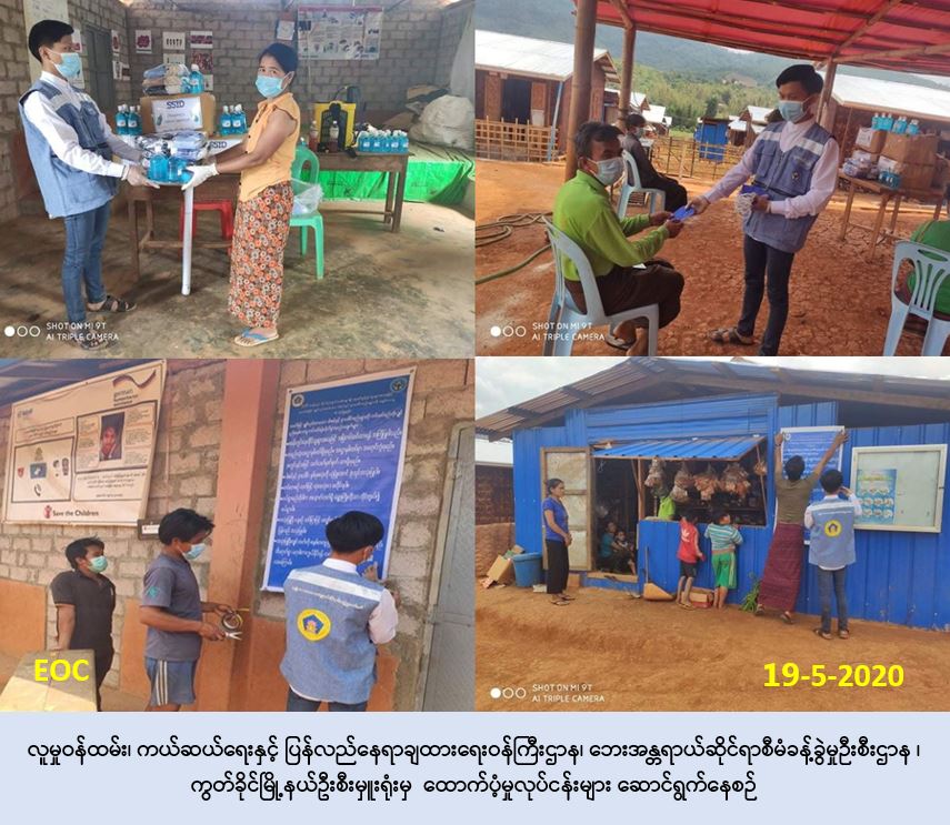 လူမှုဝန်ထမ်း၊ ကယ်ဆယ်ရေးနှင့် ပြန်လည်နေရာချထားရေးဝန်ကြီးဌာန၊ ဘေးအန္တရာယ်ဆိုင်ရာ စီမံခန့်ခွဲမှုဦးစီးဌာန၊ ကွတ်ခိုင်မြို့နယ်ဦးစီးမှူးရုံးမှ တာဝန်ရှိသူများသည် (၁၉-၅-၂၀၂၀) ရက်နေ့ တွင် ကွတ်ခိုင်မြို့နယ်အတွင်းရှိ IDP(camps) မိုင်းယုလေး အိမ်ထောင်စု (၇၇)စု၊ လူဦးရေ (၃၈၉)ဦး၊ မိုင်းယု(ကုန်စုံ)အိမ်ထောင်စု(၈၂)စု၊ လူဦးရေ(၄၂၄)ဦး၊ စုစုပေါင်းအိမ်ထောင်စု (၁၅၉)စု၊ လူဦးရေ(၈၁၃)ဦးတို့အတွက် လူတစ်ဦးလျှင် အဝတ် masks (၂) ခု နှုန်း၊ အိမ်ထောင်စု တစ်စုလျှင် ရေမလိုလက်သန့်ဆေးရေ(Hand Gel) (၂) ဗူးနှုန်း ဖြင့်စုစုပေါင်း အဝတ်mask (၁၆၂၆)ခု၊ ရေမလိုလက်သန့်ဆေးရေ(Hand Gel) (၃၁၈)ဗူး တို့ကို ထောက်ပံ့ပေးခဲ့ပြီး အဝတ် masks နှင့်ပက်သက်၍ စနစ်တကျအသုံးပြုနည်း ဗီနိုင်းပိုစတာ ကပ်ပေးခြင်းတို့ကို ဆောင်ရွက်ပေးခဲ့ကြောင်း သတင်းရရှိပါသည်။