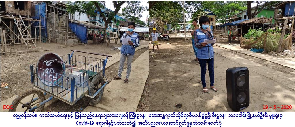 လူမှုဝန်ထမ်း၊ ကယ်ဆယ်ရေးနှင့် ပြန်လည်နေရာချထားရေး ဝန်ကြီးဌာန၊ ဘေးအန္တရာယ်ဆိုင်ရာစီမံခန့်ခွဲမှုဦးစီးဌာန၊ သာပေါင်း မြို့နယ်ဦးစီးမှူးရုံးမှ တာဝန်ရှိသူများသည် ပုသိမ်ခရိုင်၊ သာပေါင်းမြို့နယ်၊ စစ်ပင်ကြီးကျေးရွာအုပ်စု၊ စစ်ပင်ကြီးကျေးရွာနှင့် ဂုံးမင်းကျေးရွာအုပ်စု၊ ဂုံးမင်းကျေးရွာ၊ သဲပွဲ့ကျေးရွာ၊ အုန်းပင်စုကျေးရွာတို့၌ ကျေးရွာအုပ်စုအုပ်ချုပ်ရေးမှူး၊ ရပ်မိရပ်ဖများ၊ ကျေးရွာရှိတာ၀န်ရှိသူများနှင့်အတူ (၁၉-၅-၂၀၂၀)ရက်နေ့၌ (၁၁:၀၀)နာရီအချိန်နှင့် (၁၃:၀၀)နာရီအချိန်၌ လက်တလောနိုင်ငံ အသီးသီးတွင် ကူးစက်ပြန့်ပွားလျက်ရှိသော COVID-19 ကူးစက် ရောဂါနှင့်ပတ်သက်ပြီး ဆောင်ရန်/ရှောင်ရန်များကို ကျေးရွာ/ ရပ်ကွက်နေပြည်သူတို့အားအသိပညာပေးဟောပြောဆောင်ရွက်ခဲ့ပါကြောင်း သတင်းရရှိပါသည်။