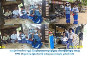 လူမှုဝန်ထမ်း၊ ကယ်ဆယ်ရေးနှင့် ပြန်လည်နေရာချထားရေးဝန်ကြီးဌာန၊ ဘေးအန္တရာယ်ဆိုင်ရာစီမံ ခန့်ခွဲမှုဦးစီးဌာန၊ မင်းဘူးခရိုင်ဦးစီးမှူးရုံးနှင့် စလင်းမြို့နယ်ဦးစီးမှူးရုံးမှ တာဝန်ရှိသူများသည် (၂၀-၅-၂၀၂၀)ရက်နေ့တွင် မင်းဘူးခရိုင်၊ စလင်းမြို့နယ်၊ အနောက်ကန်ဘောင်ကျေးရွာ၊ ဆင်ကျုံးကျေးရွာ၊ ကူတိုကျေးရွာ၊ ရွှေဘုံသာကျေးရွာနှင့် ဆင်ဖြူကျွန်းမြို့၊ အမှတ်(၁)ရပ်ကွက်များအတွင်း Covid-19 ရောဂါကူးစက်ပျံ့နှံ့မှုမဖြစ်ပွားစေရန် သိရှိလိုက်နာဆောင်ရွက်ရမည့် အချက်များကို အထွေထွေ အုပ်ချုပ်ရေးဦးစီးဌာနမှ တာဝန်ရှိသူများ၊ ရပ်ကွက်/ ကျေးရွာအုပ်ချုပ်ရေးမှူးများ၊ ရပ်မိရပ်ဖများနှင့်ပူးပေါင်း၍ အသိပေးဆောင်ရွက်ခဲ့ကြောင်း သတင်းရရှိပါသည်။